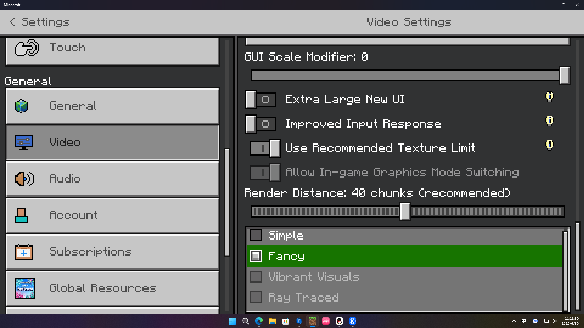 Steps to reproduce the issue: 1. Turn on Allow in-game graphics mode toggle to enter the game 2. Exit the game 3. Reload your world 4. Select Simple or Fancy