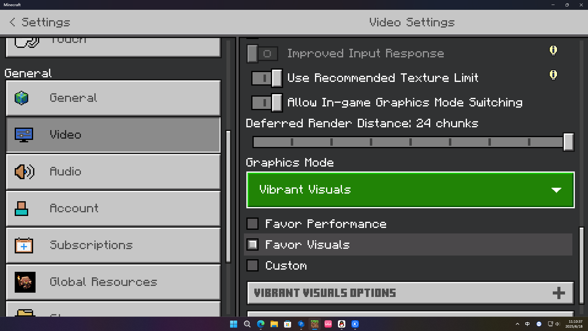 Expected result: Vibrant Visuals will be locked until you exit the single-player game or turn off and on Allow In-game Graphics Mode Switching