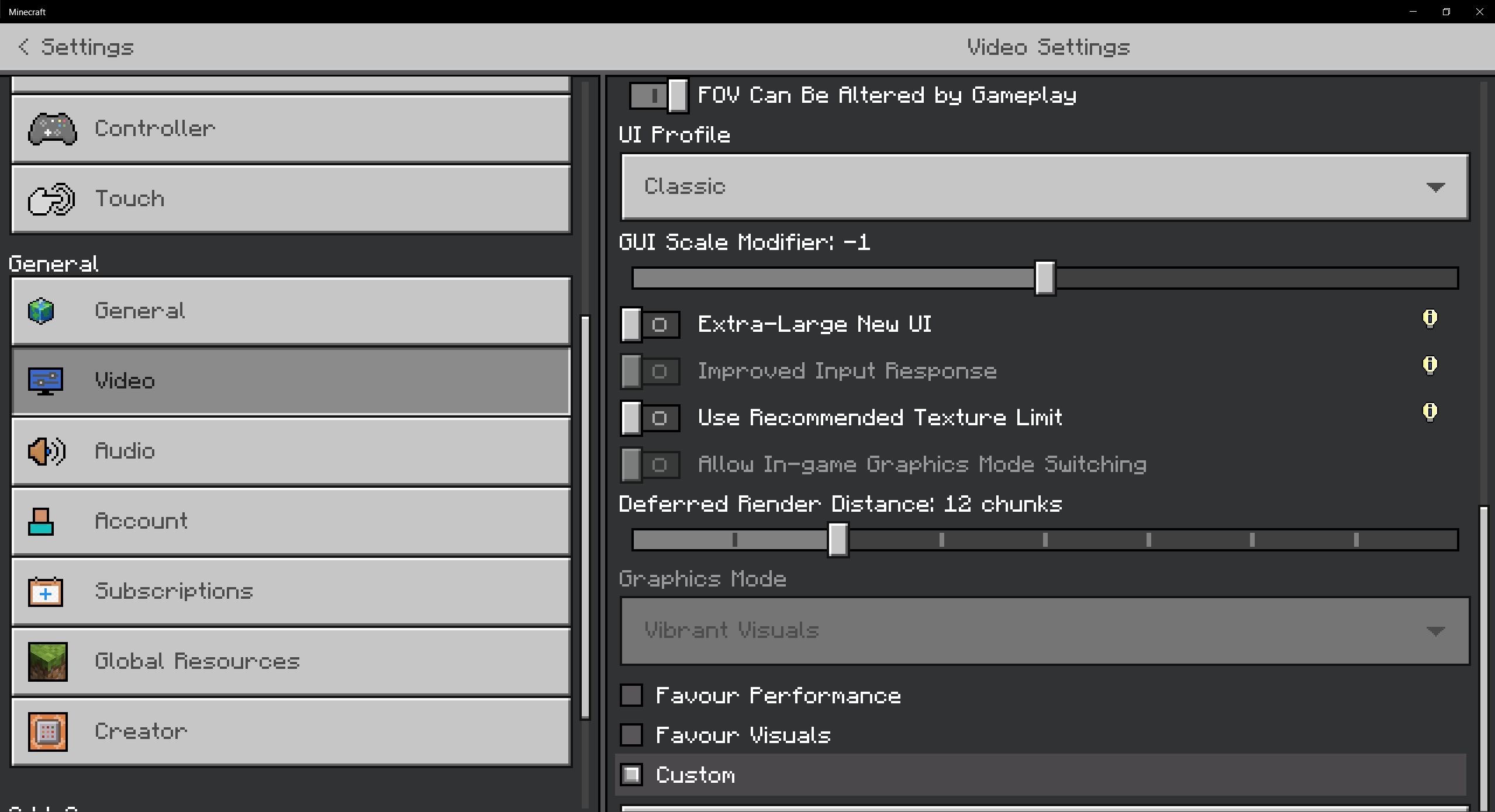 Within Bedrock, vibrant Visuals is unable to be disabled through graphics mode, i.e the option is ‘greyed out’