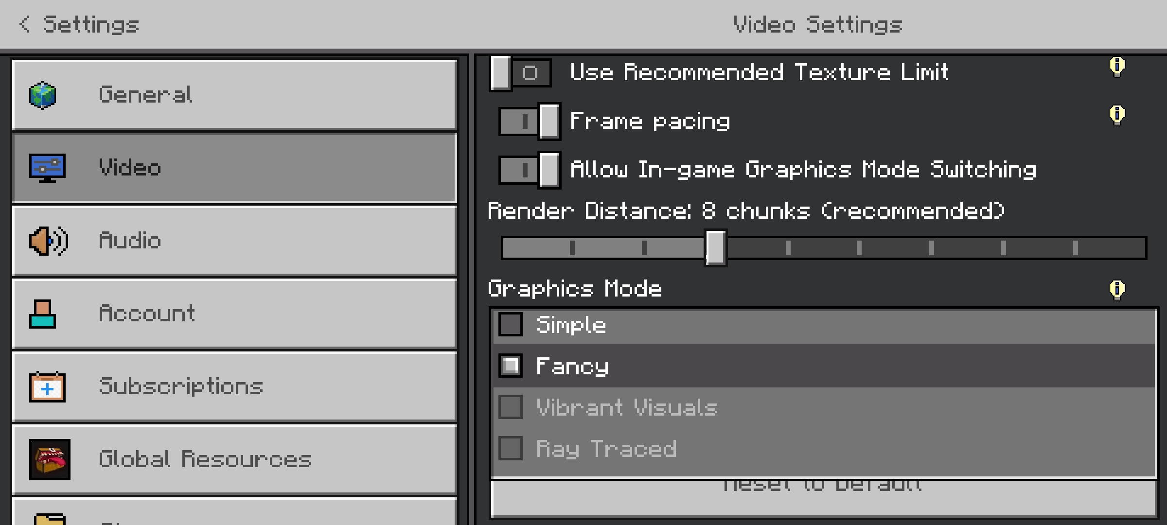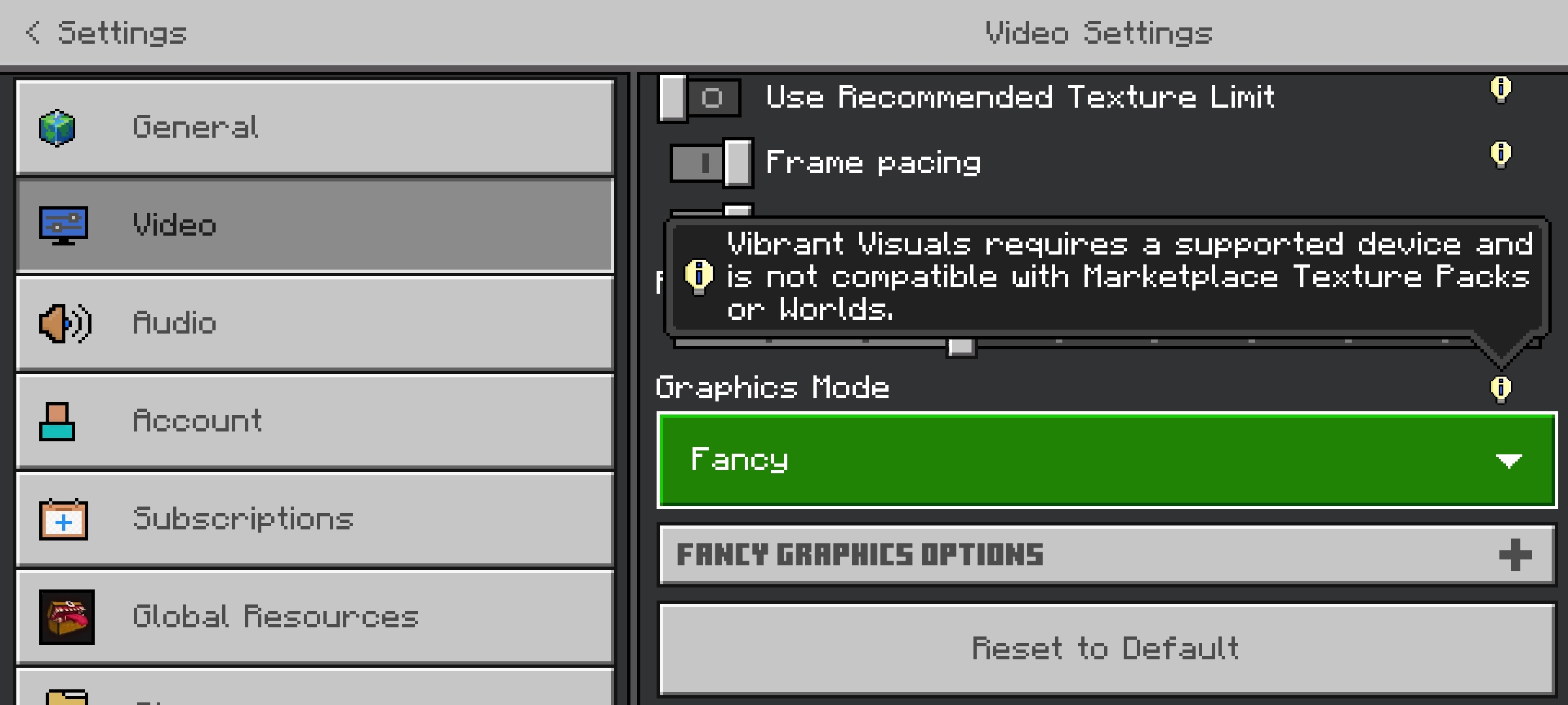 As mentioned in the 1.21.80 changelog, an Adreno 640 or higher is required to use Vibrant Visuals. Your device has an Adreno 610.
