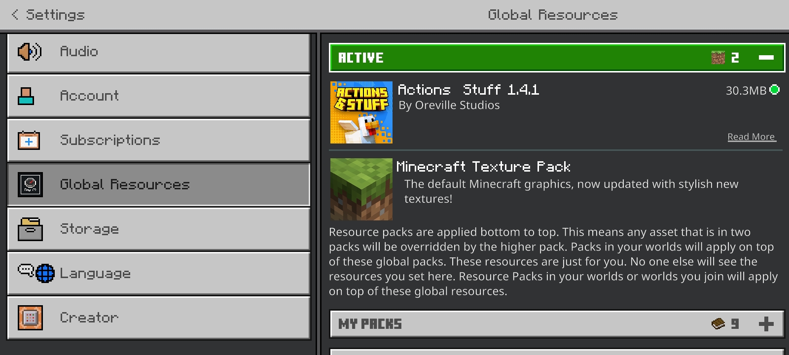 This pack no longer appears in Global Resources, even though I’m using the latest version of it. I’ve tried everything, but nothing works. What’s strange is that my friend, who is using a cracked version of Minecraft, can still use Action Stuff without any problem — but I, who paid for the official version, can’t. This feels really unfair.