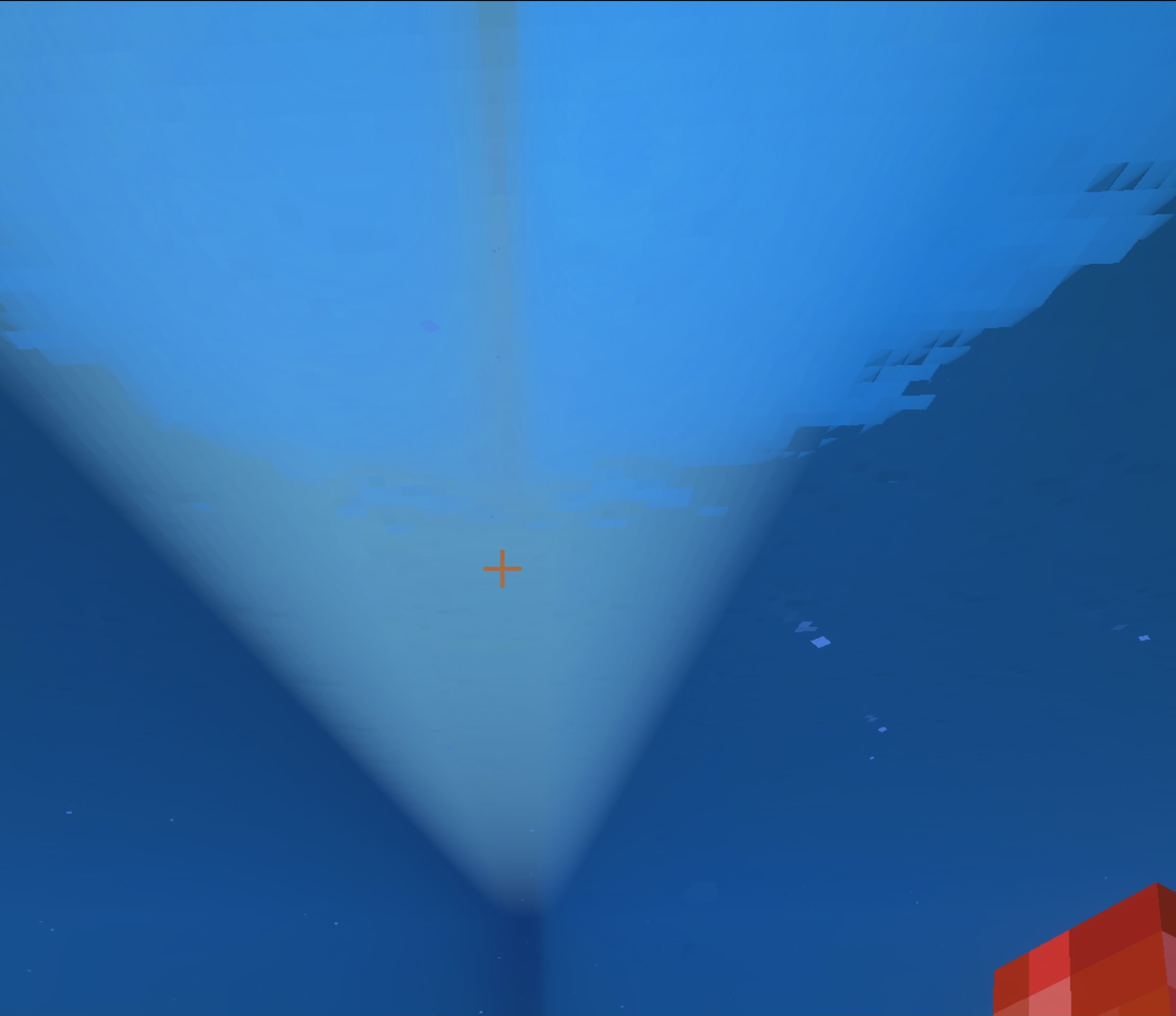 The water looks clearer/whiter when it has a block above it, independent of the block high