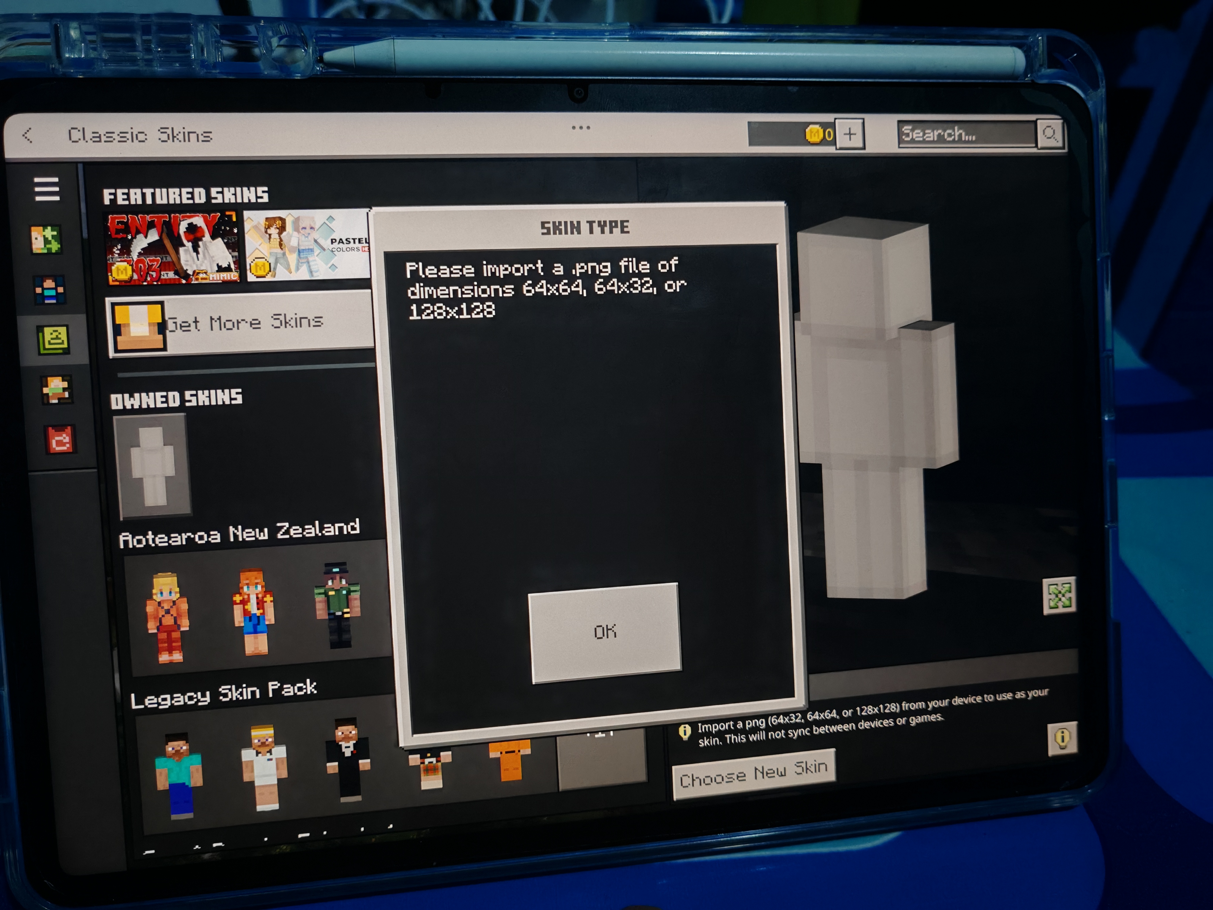 I cant import a local skin it said (a local or platform skin could not be loaded) please fix this.