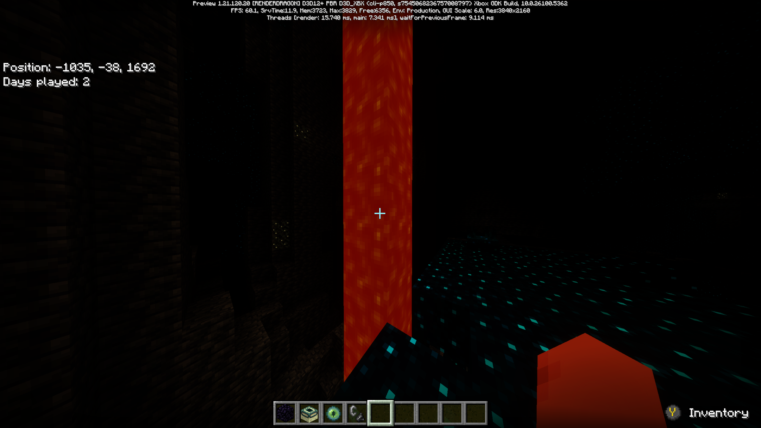Expected Results: The lava should stay the same colour across all brightness levels. Just as it does in the Fancy or Simple Graphics mode.