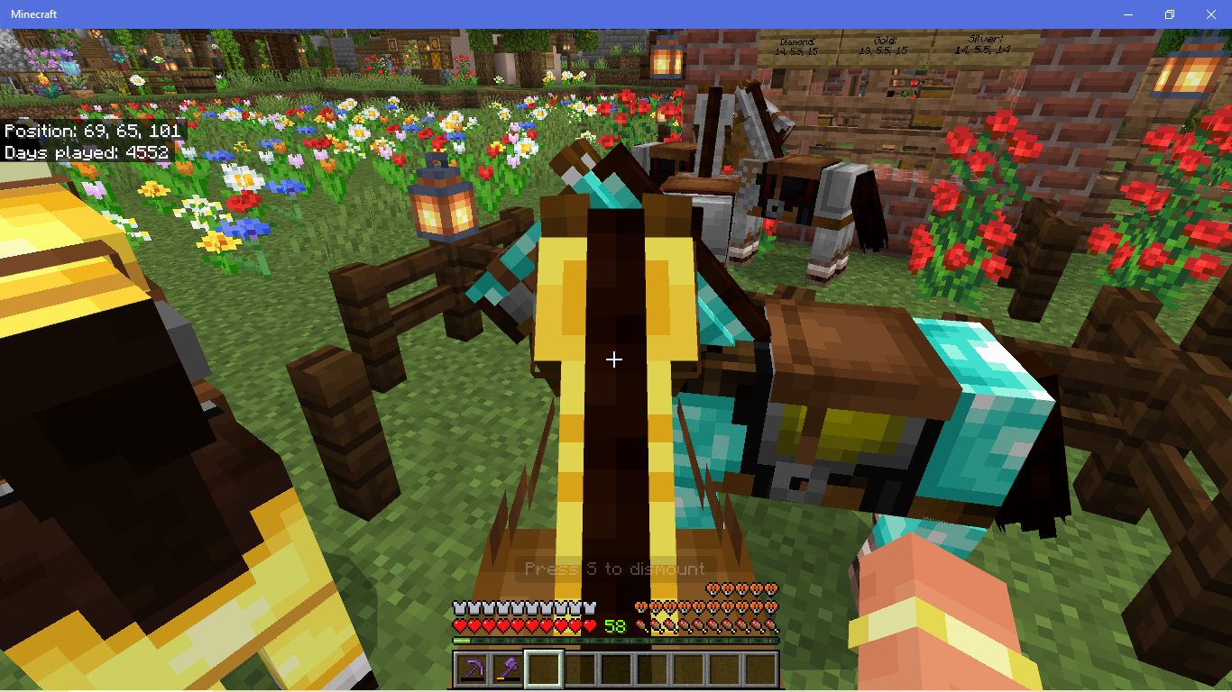I saved and quit to begin reporting this bug, I then reopen my most current copy of the world to create the screenshots and the full 15 hearts have returned to all three horses! Before saving images, I reopened an old copy again, then returned to the latest copy and diamond is back to 14 hearts, and both gold are 13 hearts this time.