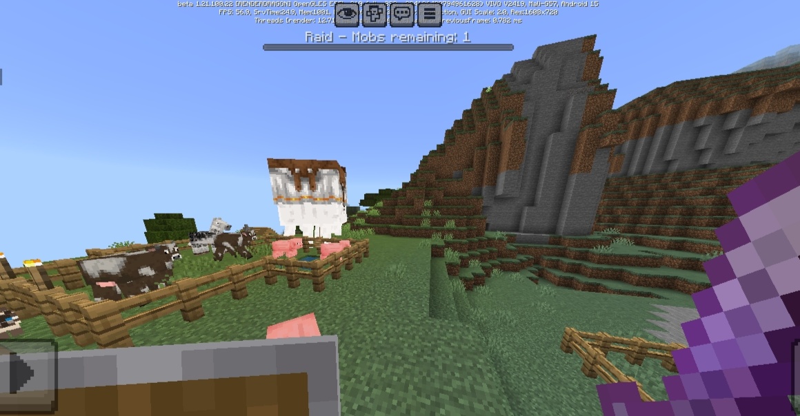 After winning 3 out of 4 times, the raid indicator got stuck, even though I had eliminated all the pillagers. Previously, when there was "Raid: 1 remaining" and the bar indicator was still there and after killing the last one, its health indicator disappeared, but the indicator still detected that there was 1 pillager left. I then searched for it, and because I was tired, I duplicated the world and activated cheats, then searched using spectator mode plus night vision effect. I went around the village area, even under the bedrock, but there was not a single pillager.