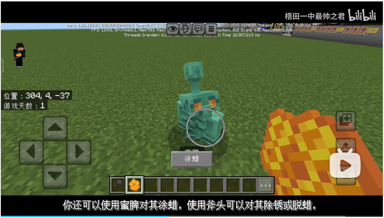 Also effected on mobile touch controls action button, and even I waxed on or off to the copper golems, it also effected with this issue again, but I’ve been fixed this issue for editing the language text files.