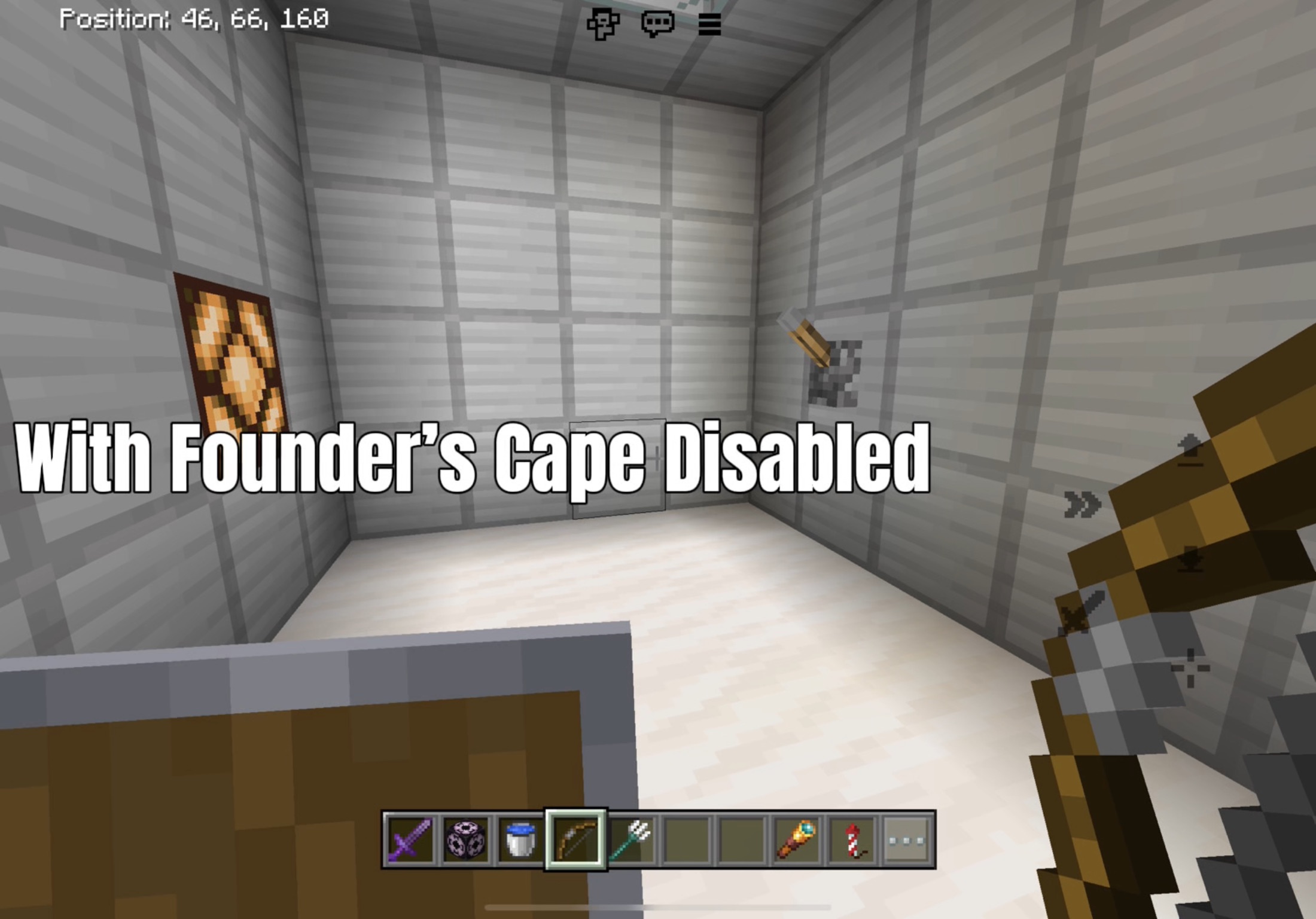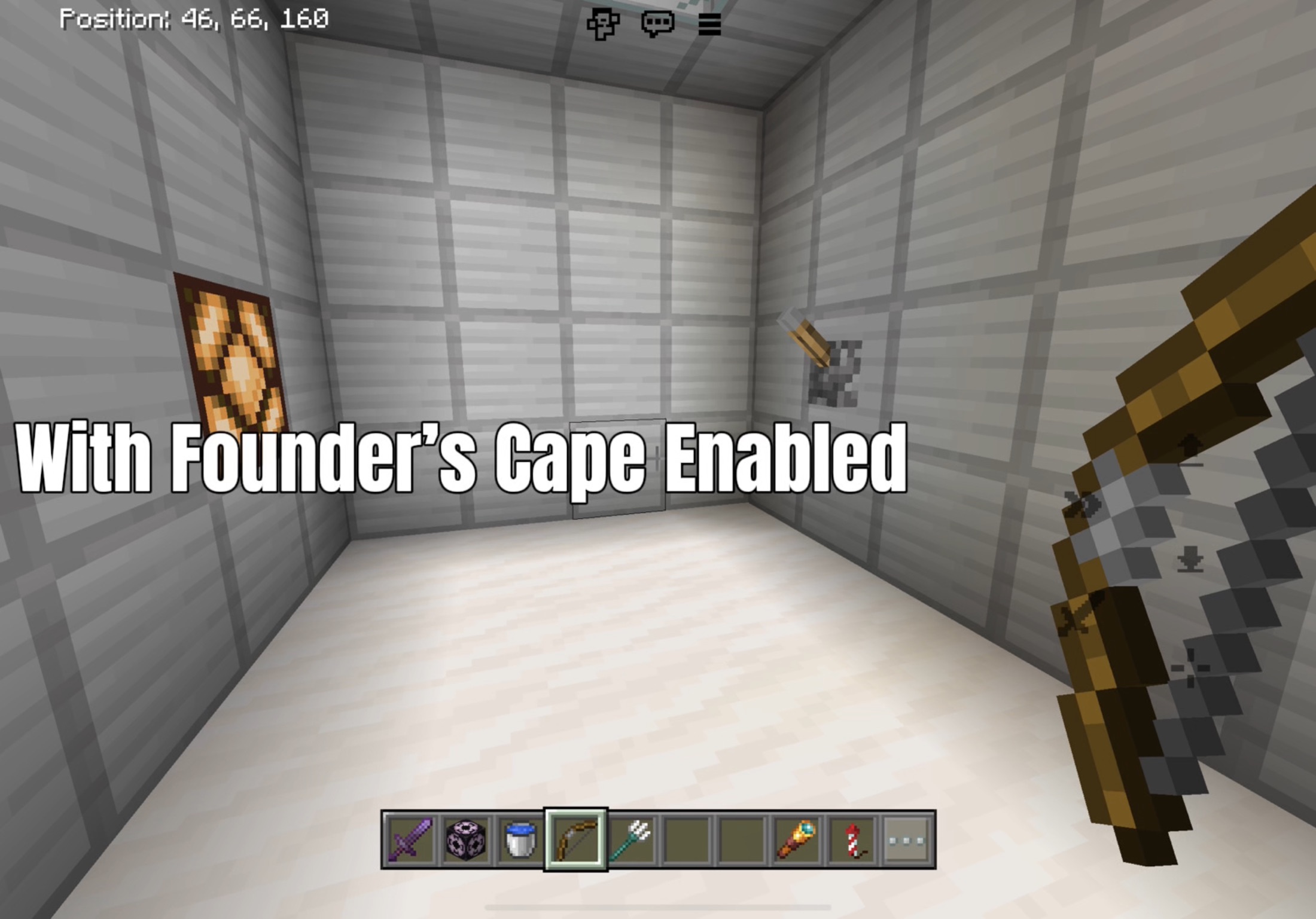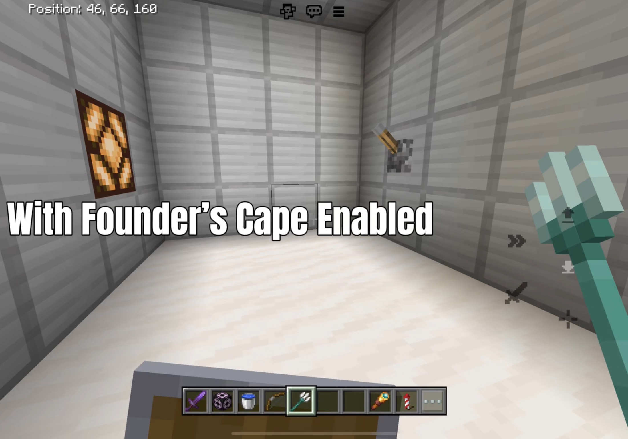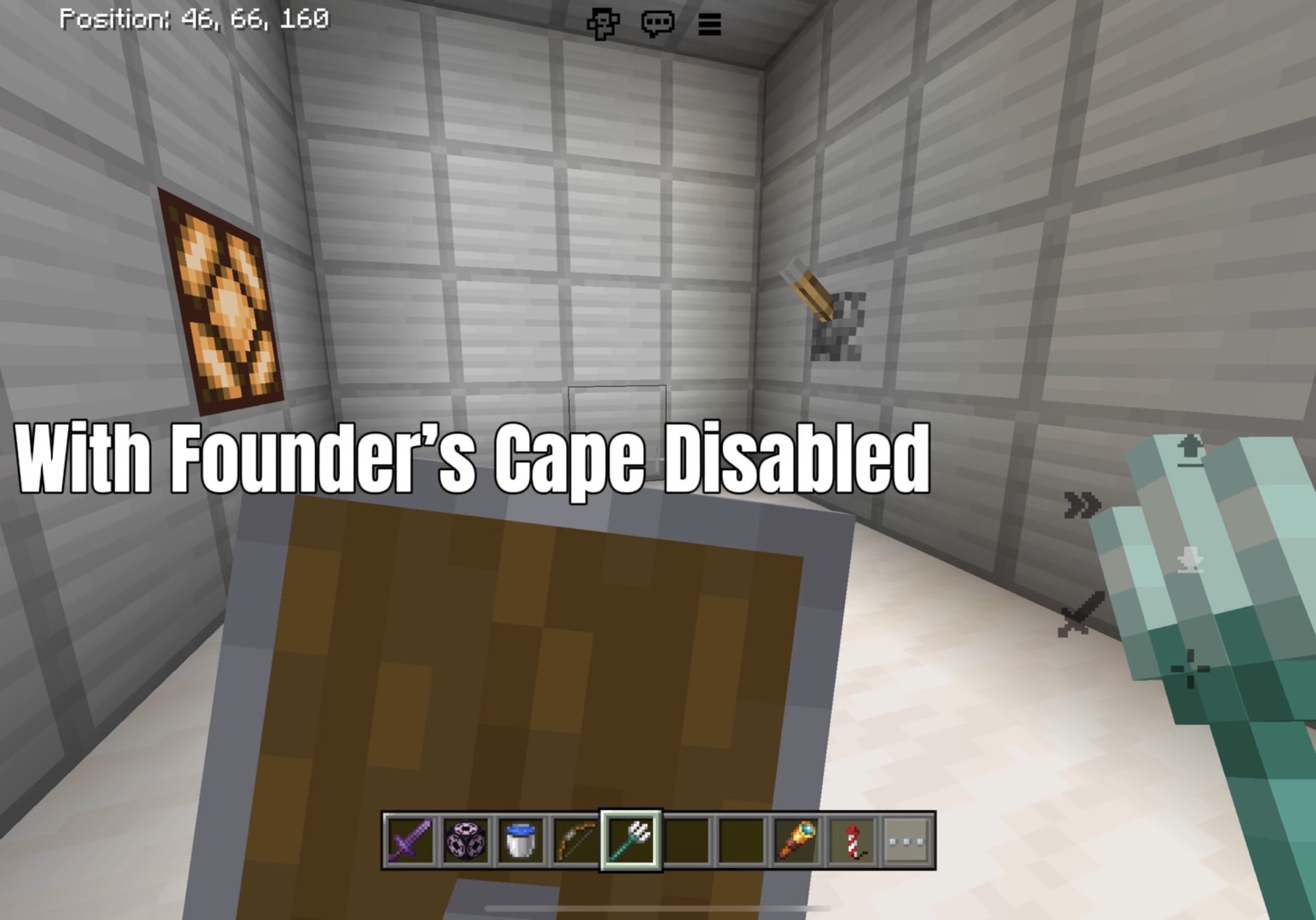 When using items like the shield, trident, and bow, items in the offhand are shifted down and items in the mainhand are shifted up when using the founder’s cape in first person. I’m not sure when this bug occured, but I’ve noticed it for a while now. It may affect platforms other than iOS.