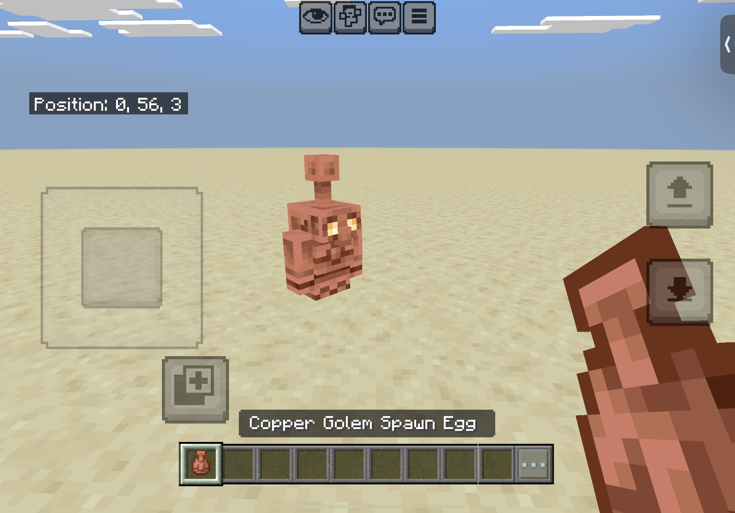 Hello Mojang, The new update is great but I have a bug to report which is that, every blocks work properly but the new spawn egg has a bug {The spawn egg appears Invisible on the menu} and the new mob (Copper Golem) It is invisible like literally! it works properly it opens the chest everything works but the main copper golem doesn't. I hope that Mojang fixes this issue and the other features are gold! Love from India!
