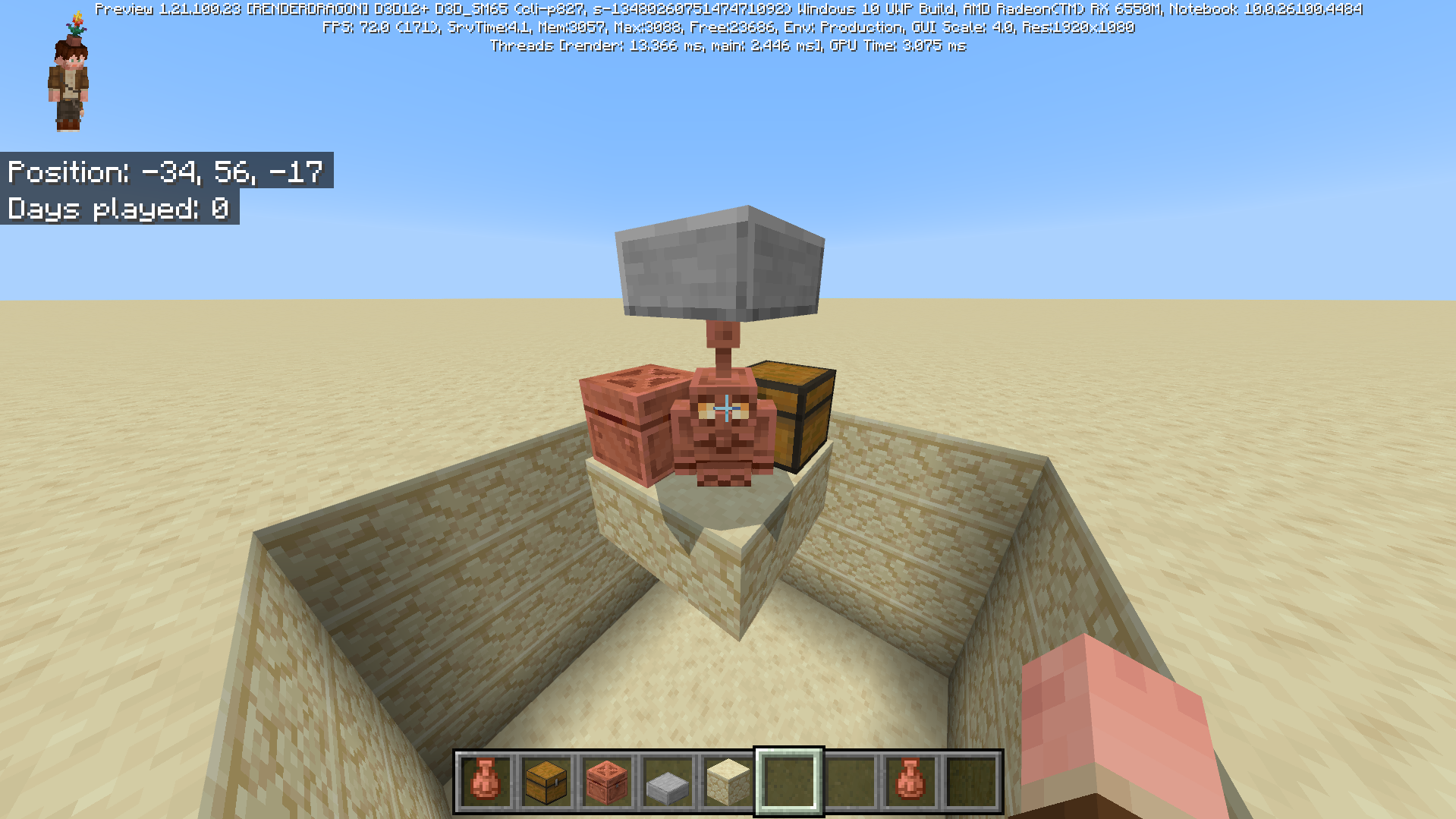 Arrange a copper chest, chest, and copper golem in a way that the copper golem has a block above it and chests are accessible (similar to the attached image).
