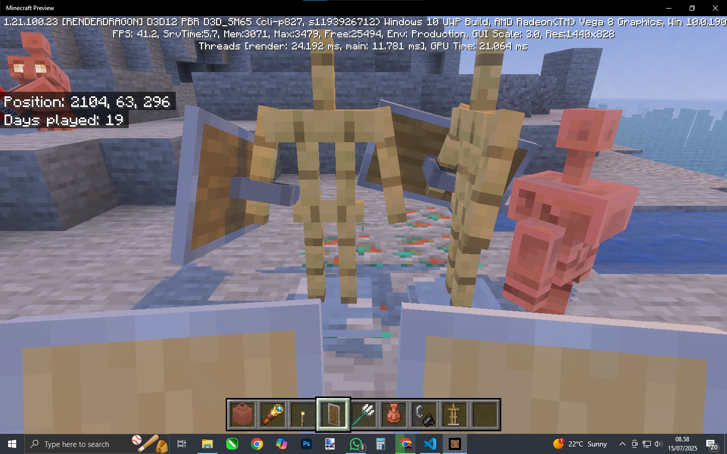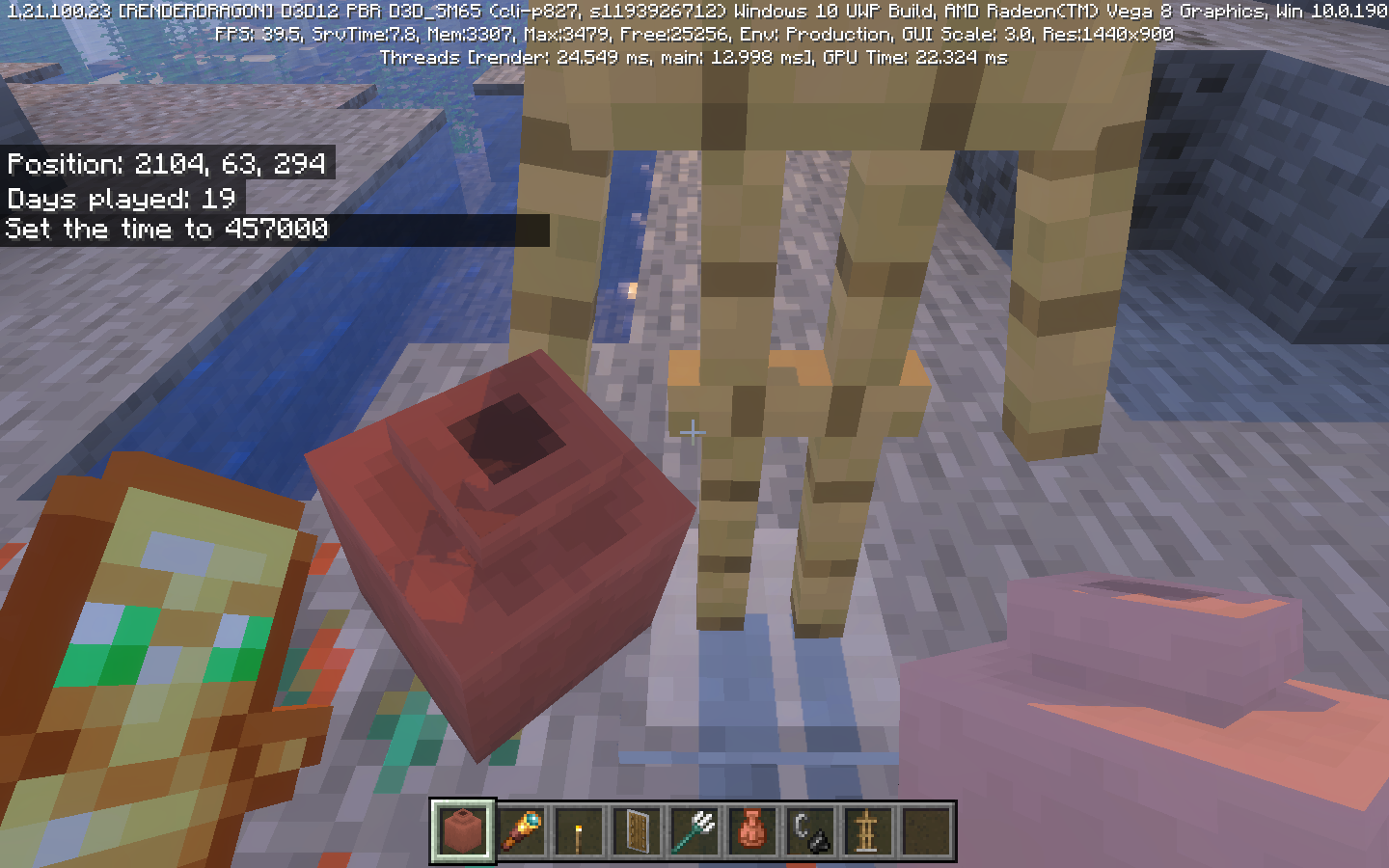 The appearance of a Block Model held in first-person perspective differs from that of a Block Model held in third-person perspective or placed elsewhere, such as an armor stand.