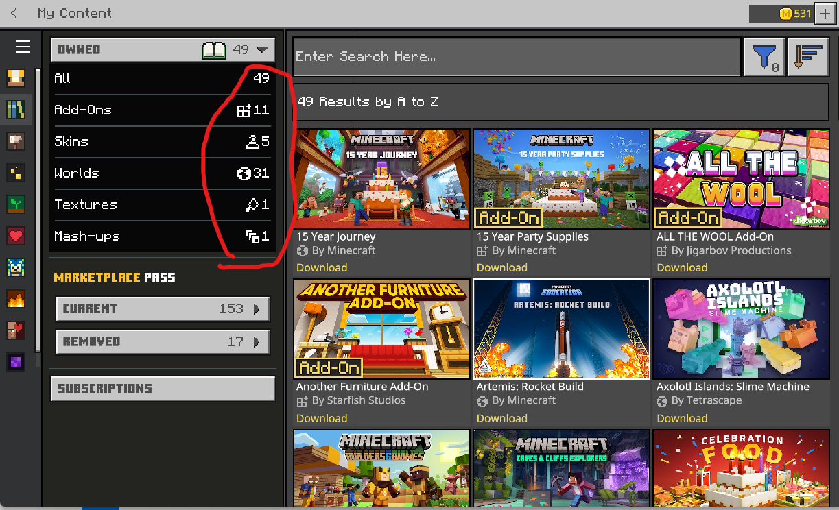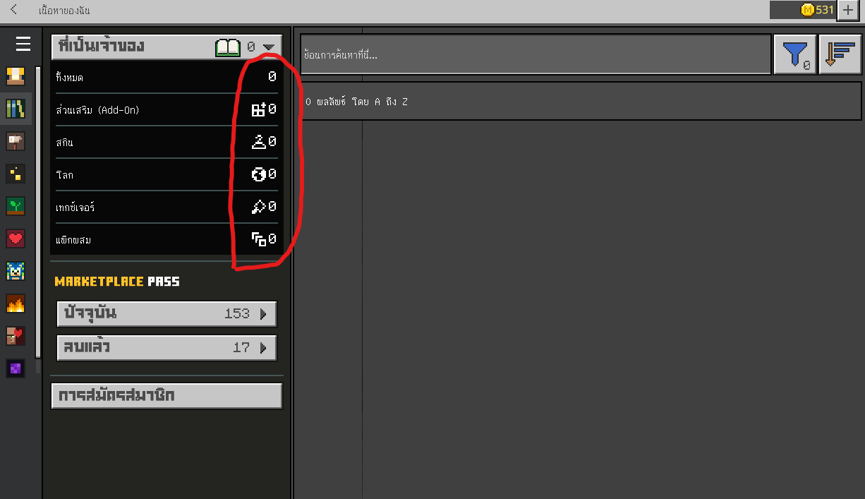 When using a custom lang file or custom language pack in Minecraft Bedrock Edition, the My Content tab in the Marketplace does not display any of my purchased or owned content.