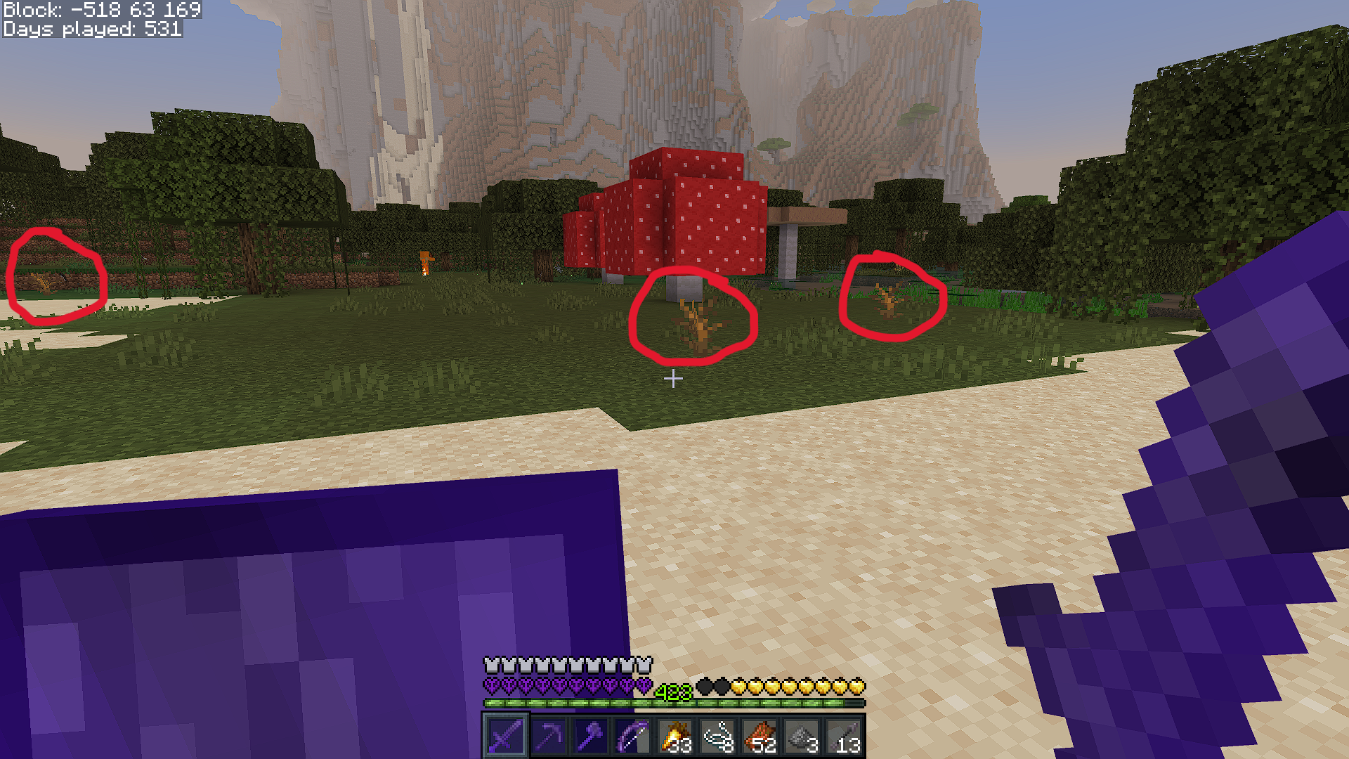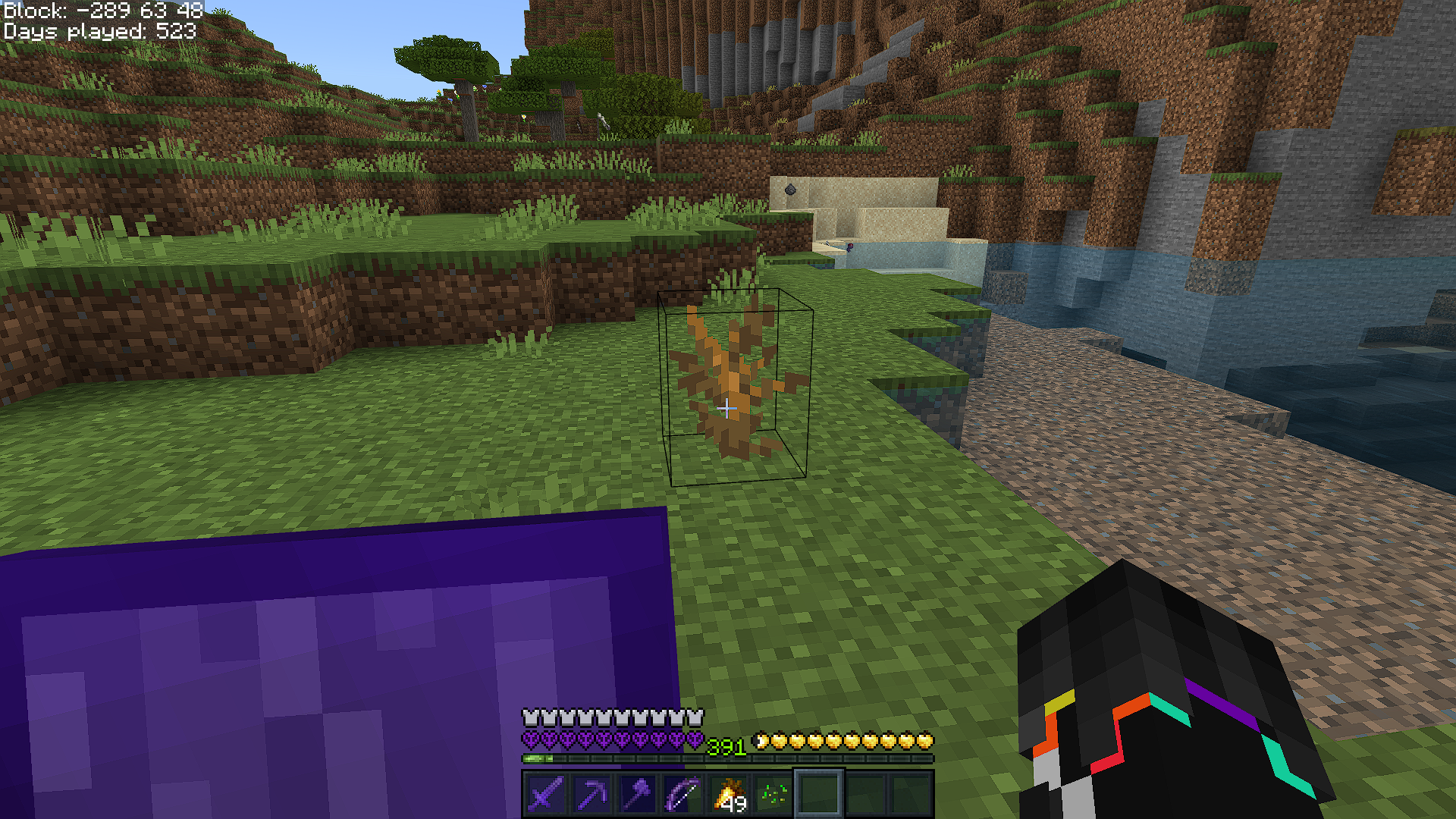 I found 4 dead bushes naturally generated on grass blocks in Survival mode, without commands or any mods and cheats. Mention that it happened in Bedrock 1.21+, and I’m unsure if it’s a new feature or generation bug since dead bush is suppose to only naturally generate on sand, red sand, terracotta, or hardened clay in deserts, badlands, or old growth taigas, not grass.