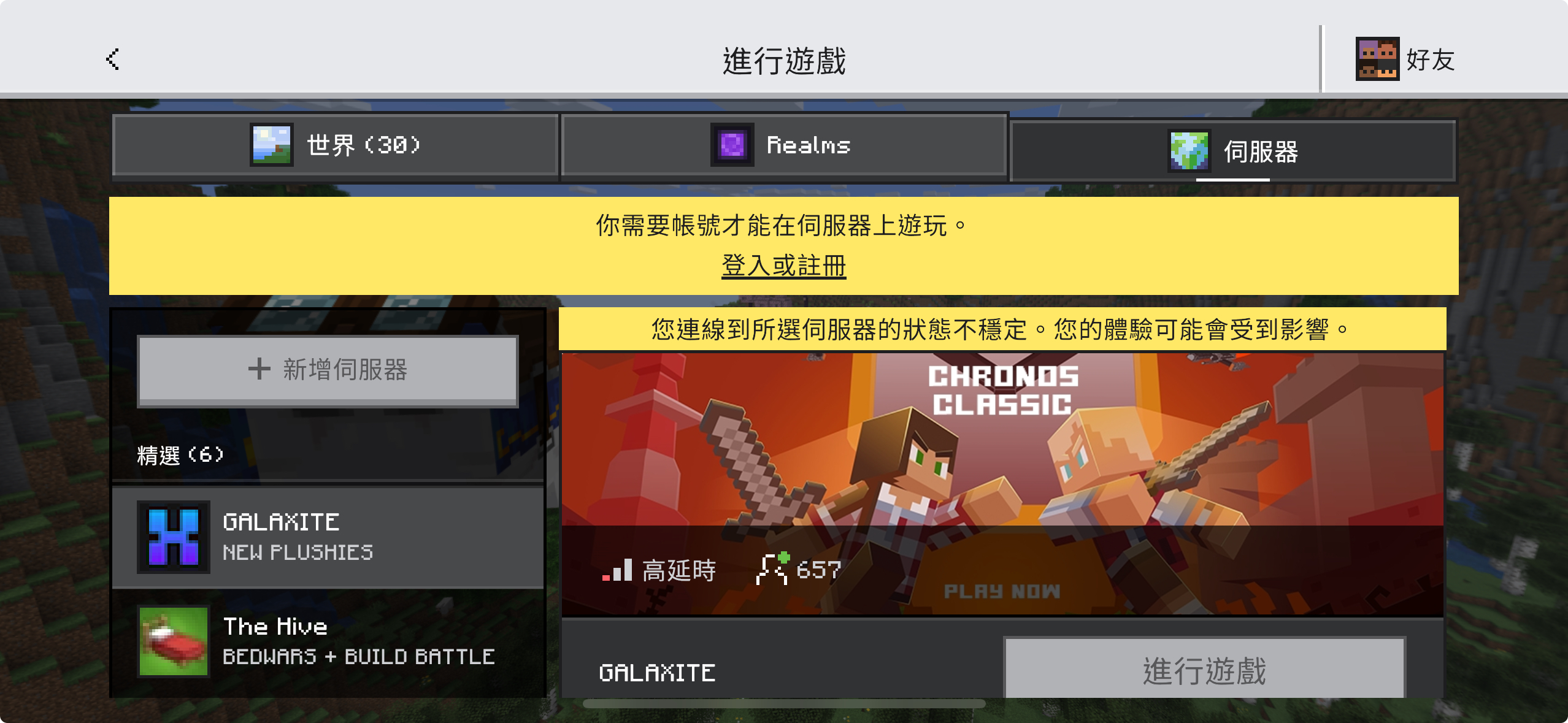 Click “遊戲” / “游戏” (Play), which it uses OreUI (the new UI)