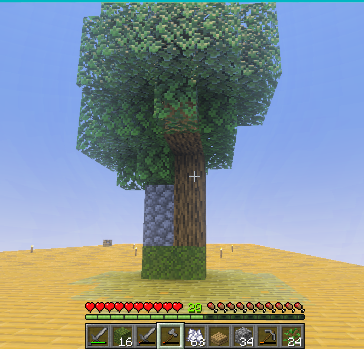 Expected result: The moss block directly underneath the giant oak tree sapling should be replaced with a dirt block. This is consistent with how other saplings (e.g., normal oak, birch, spruce) replace the block underneath them with dirt upon growth. This mechanic is especially crucial in game modes like Skyblock, where replacing a moss block with dirt is a vital method for generating new dirt.