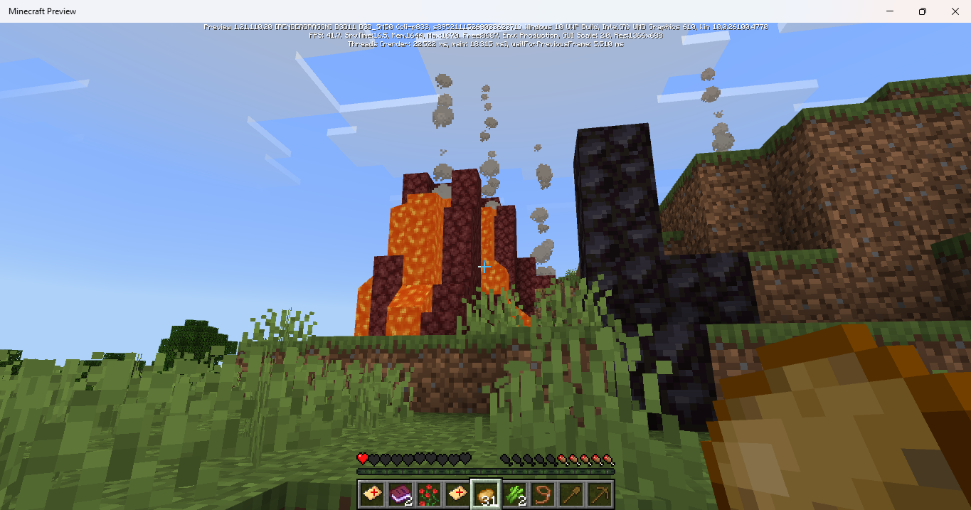 In seed 8952111526903362371, in the closest (or one of the closest) village to spawn there are structures that contain netherrack/lava but are not ruined portals, as they contain no obsidian/crying obsidian or chests. The lava source blocks of these structures emit smoke, like that from a campfire.
