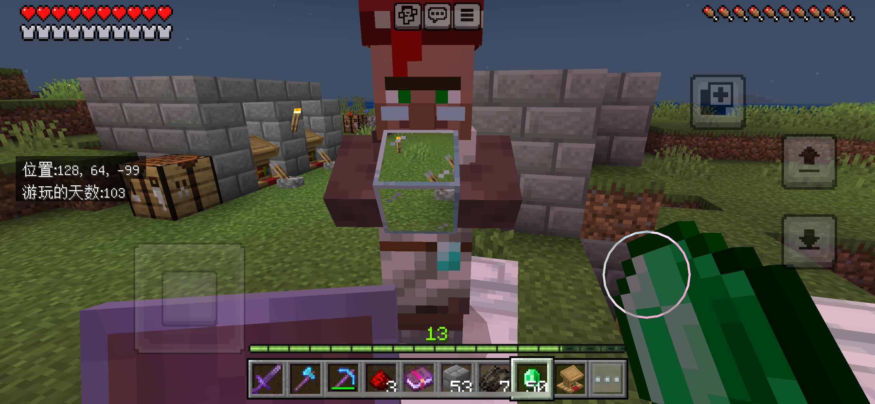 The librarian shows the player the item for sale: a glass block, through which the player can see things behind the villager but not the villager's body.