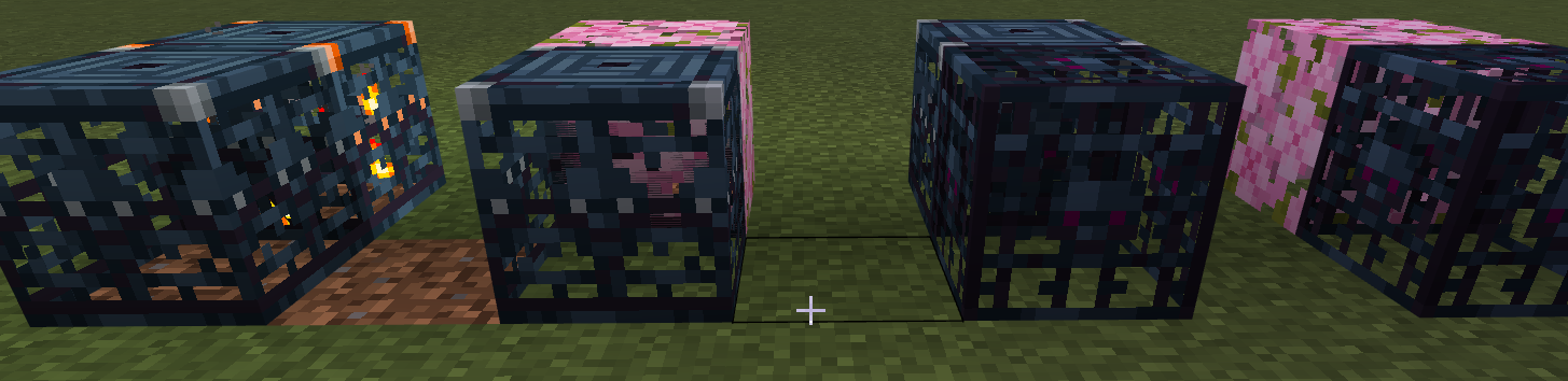 The inside of these blocks will z-fight when placed next to other blocks (except leaves next to leaves). Also, Trial Spawners will z-fight when placed next to Trial Spawners of a different block state.