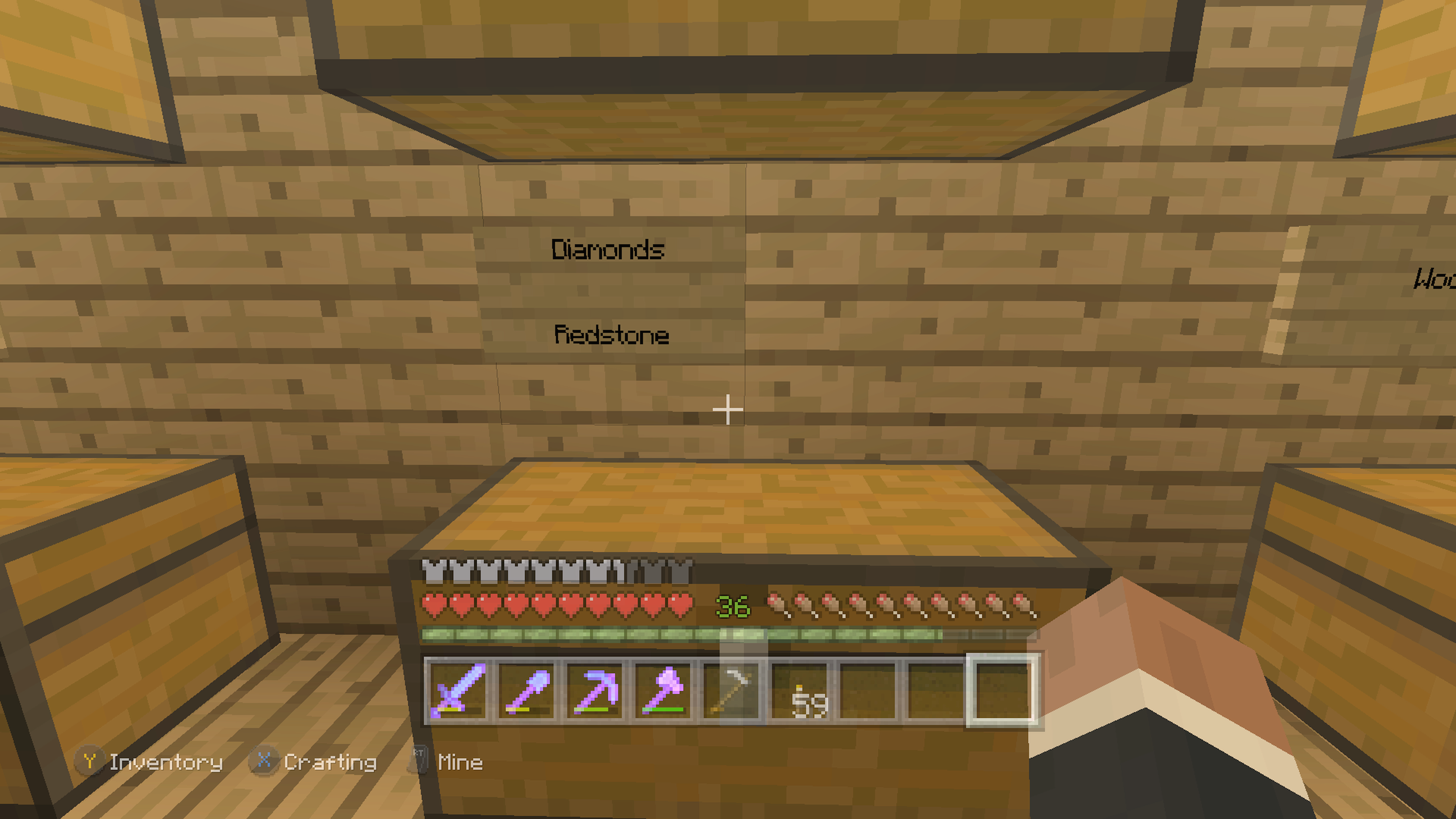 When converting a world from Minecraft: Xbox One Edition or Minecraft: Xbox 360 Edition, signs within worlds lose any text that was applied to them in the legacy edition. See the example in the images below.