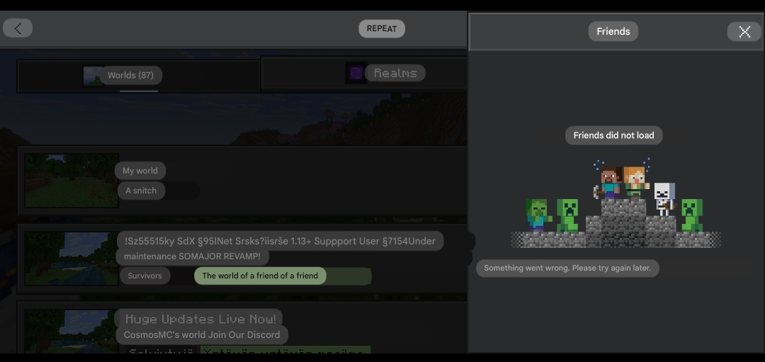 Hi, I can't download my friends list, it says Something went wrong. Please try again later. When I play Minecraft every day then I try to play Minecraft with a friend but it won't load the friend list Still What causes this? Can someone tell me about this? Why won't the friend list Do I