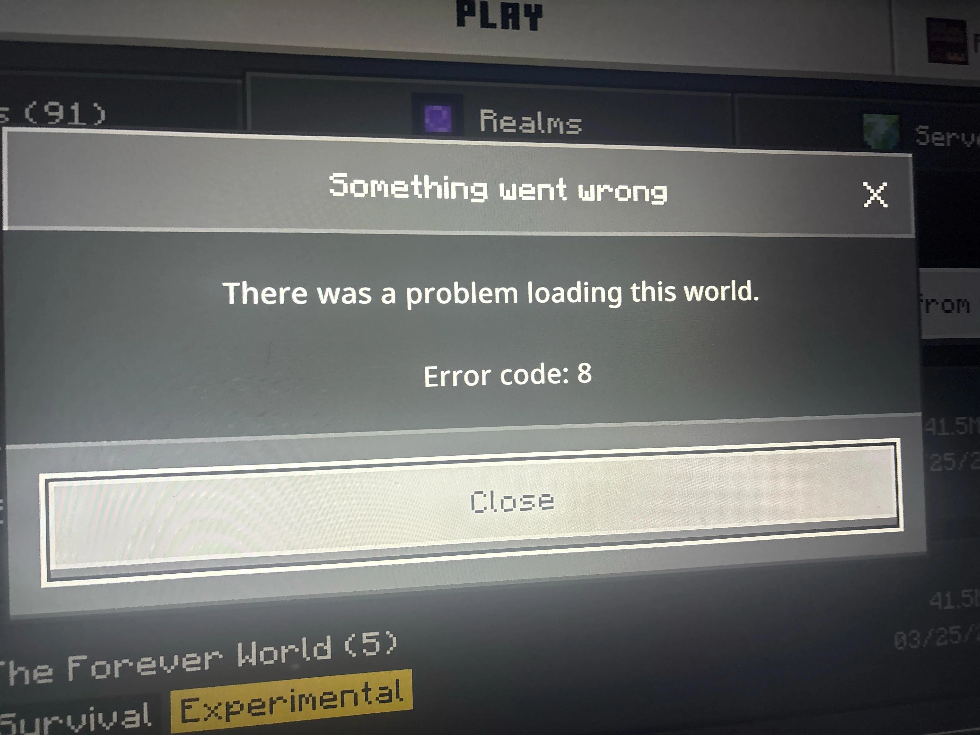 When the lights go out in the apartment while playing on PS4, after rebooting Minecraft the world does not start with error 8. The error has been present in the game for a very long time, I understand that this happens because the game suddenly turns off and does not have time to save. But perhaps there is a solution to this problem.
