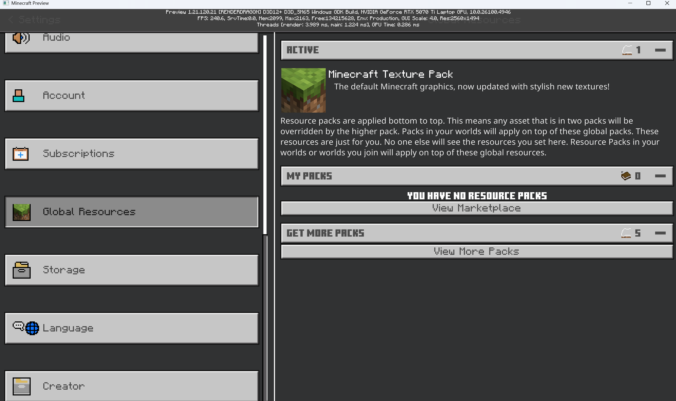 Launch the latest Minecraft Preview version.