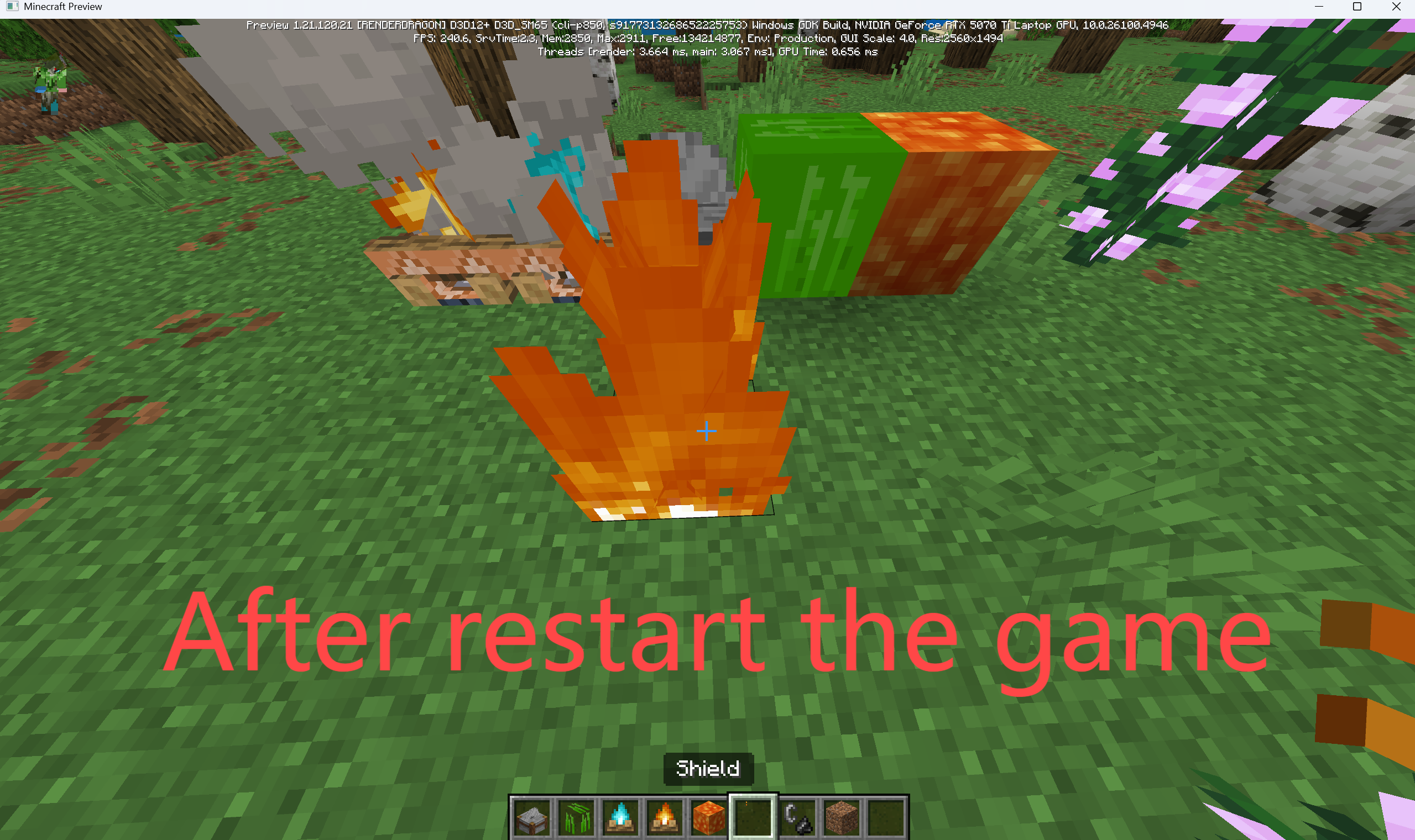 Description: The latest Minecraft Preview version suffers from major graphical corruption affecting both the user interface (UI) and in-game block rendering. UI elements such as menus, buttons, and text appear misaligned, distorted, or partially invisible. Additionally, certain blocks in the game world render incorrectly, displaying texture flaws, flickering, or incomplete models. These issues occur inconsistently but frequently, often worsening or changing after restarting the game. This severely impacts usability and immersion and requires immediate attention.