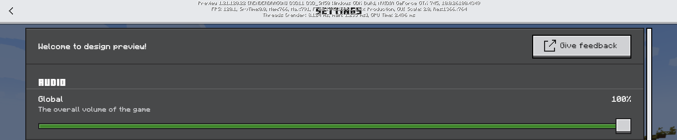 When you opened the new Audio settings, previously there's a description under "Audio" text, but in the Preview 1.21.120.22 the description under "Audio" text no longer present, additionally the size of the "Audio" text is a little bit smaller than it used to be.