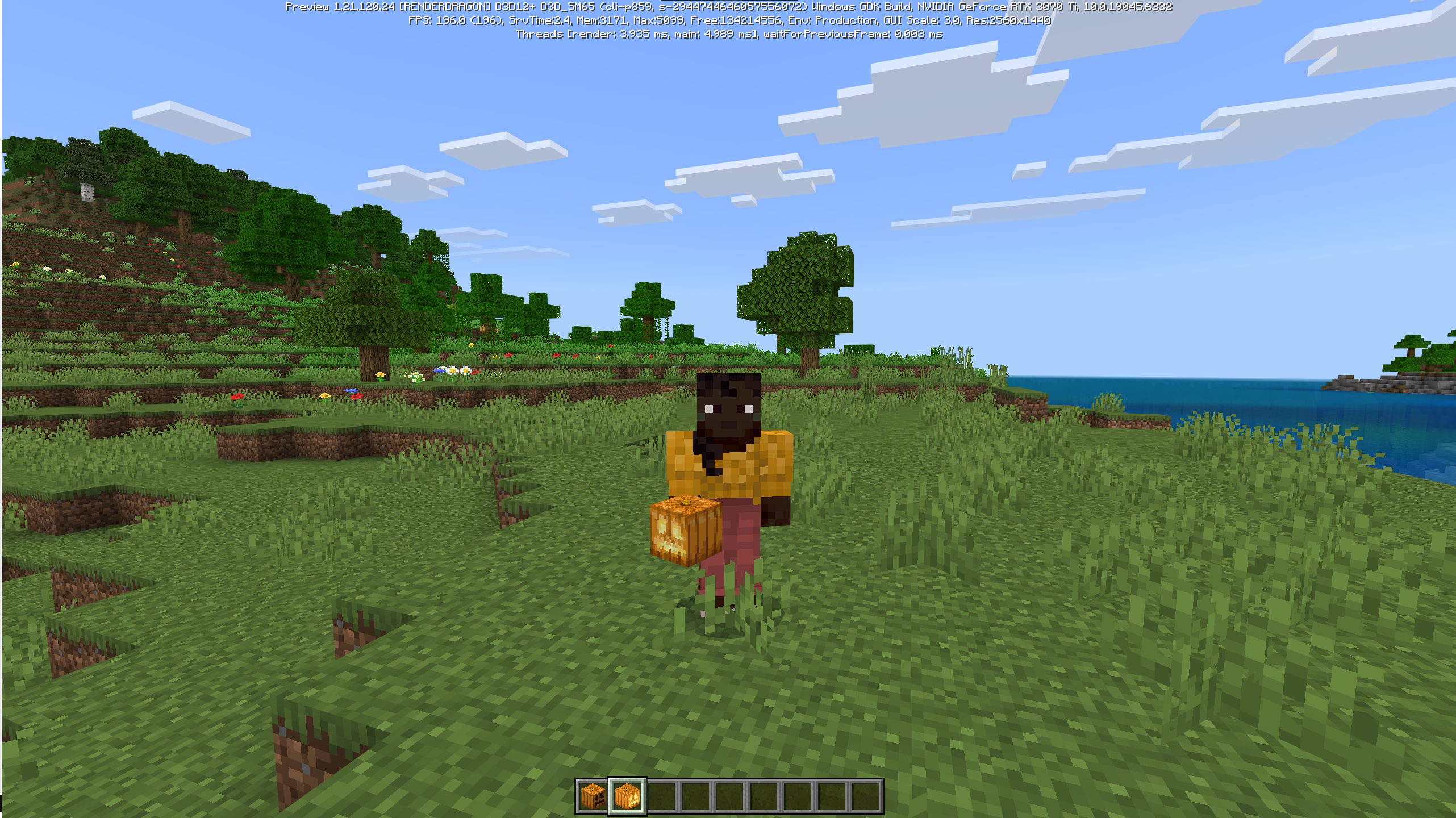 The pumpkin and the glowing pumpkin in his hand do not match the Java edition are looking in different directions