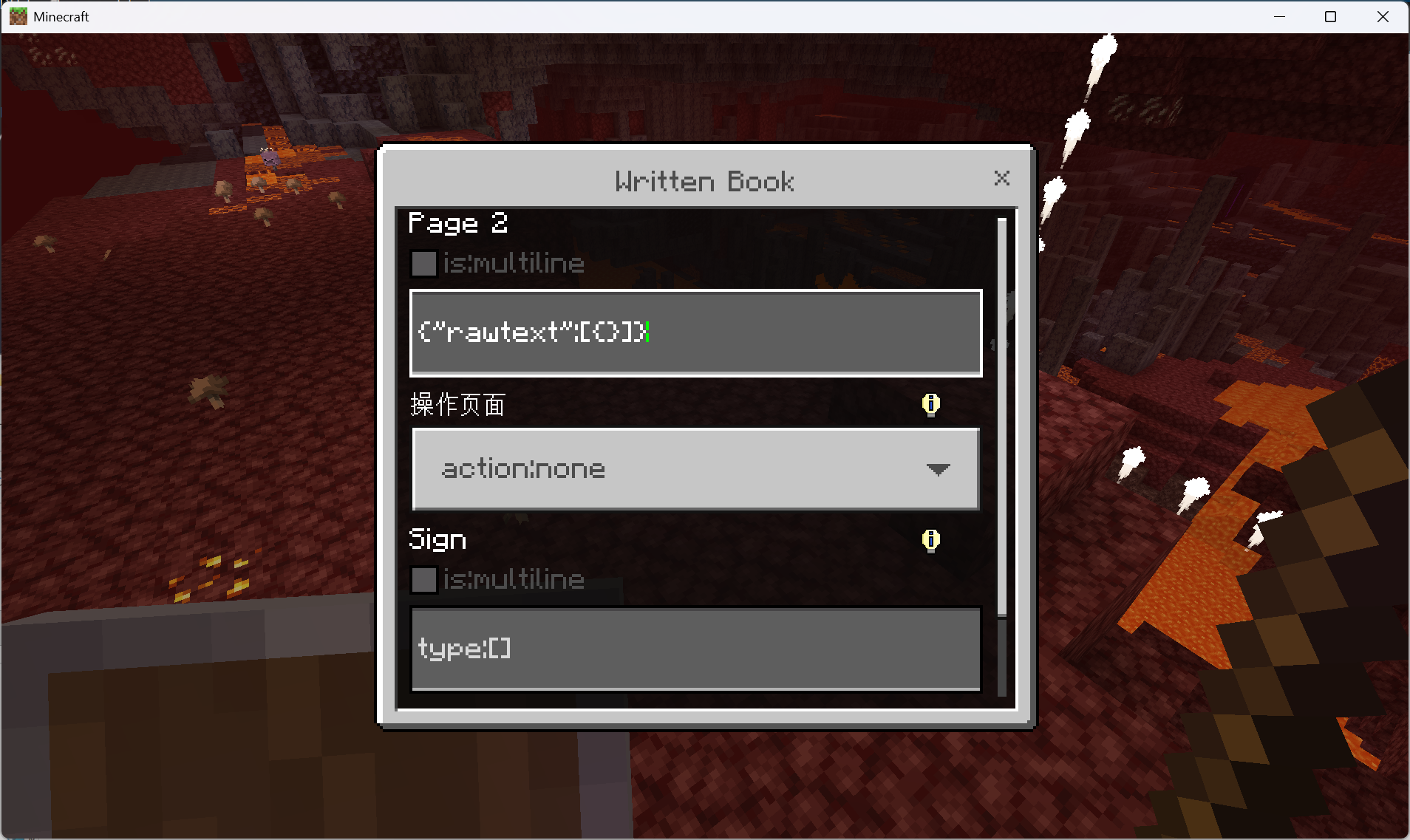 .textField({translate: "portfolioScreen.page", with: [String(pageNum)]}, {translate: "type:JSON"}, {defaultValue: book.getPageContent(pageNum-1)??`{"rawtext":[${JSON.stringify(book.getRawPageContent(pageNum-1)??{})}]}`})