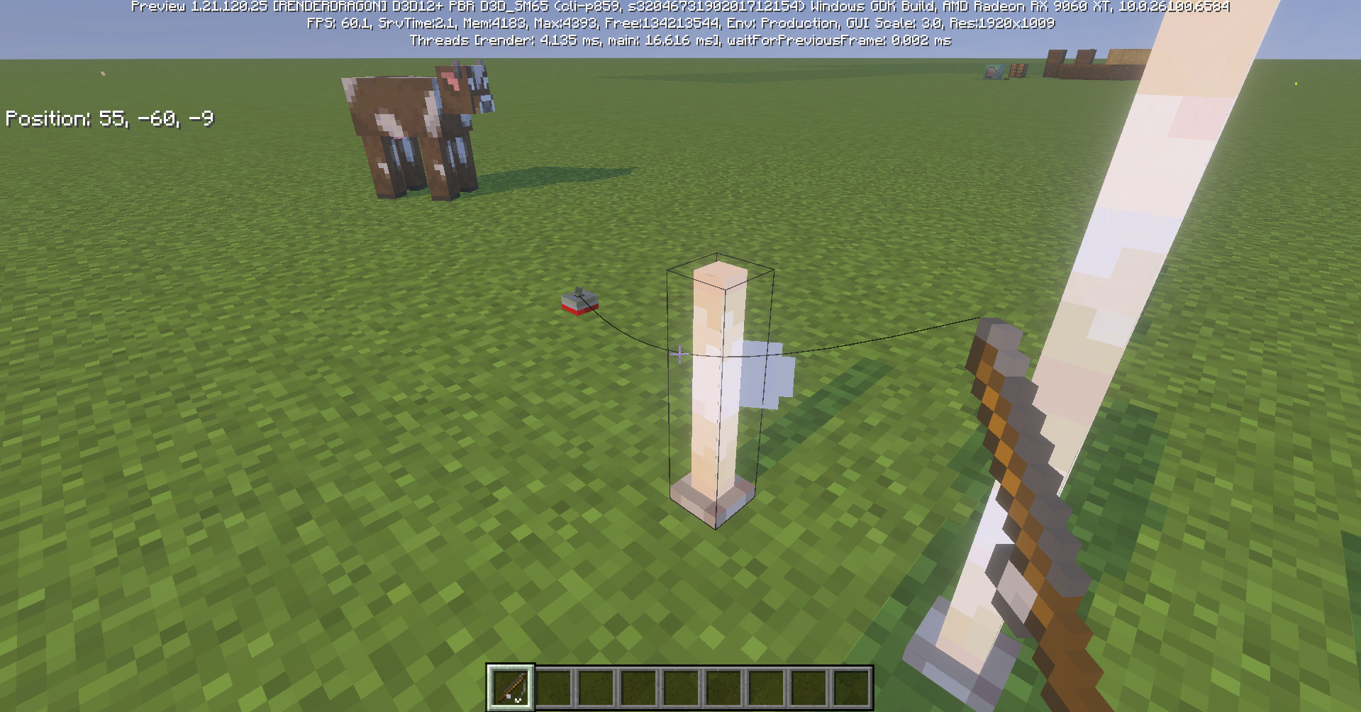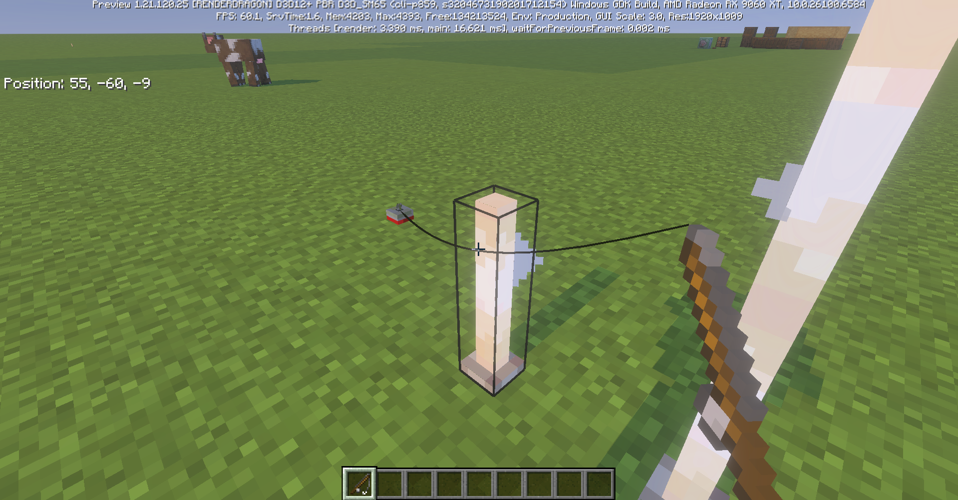 Open a world and target a block or cast a fishing rod