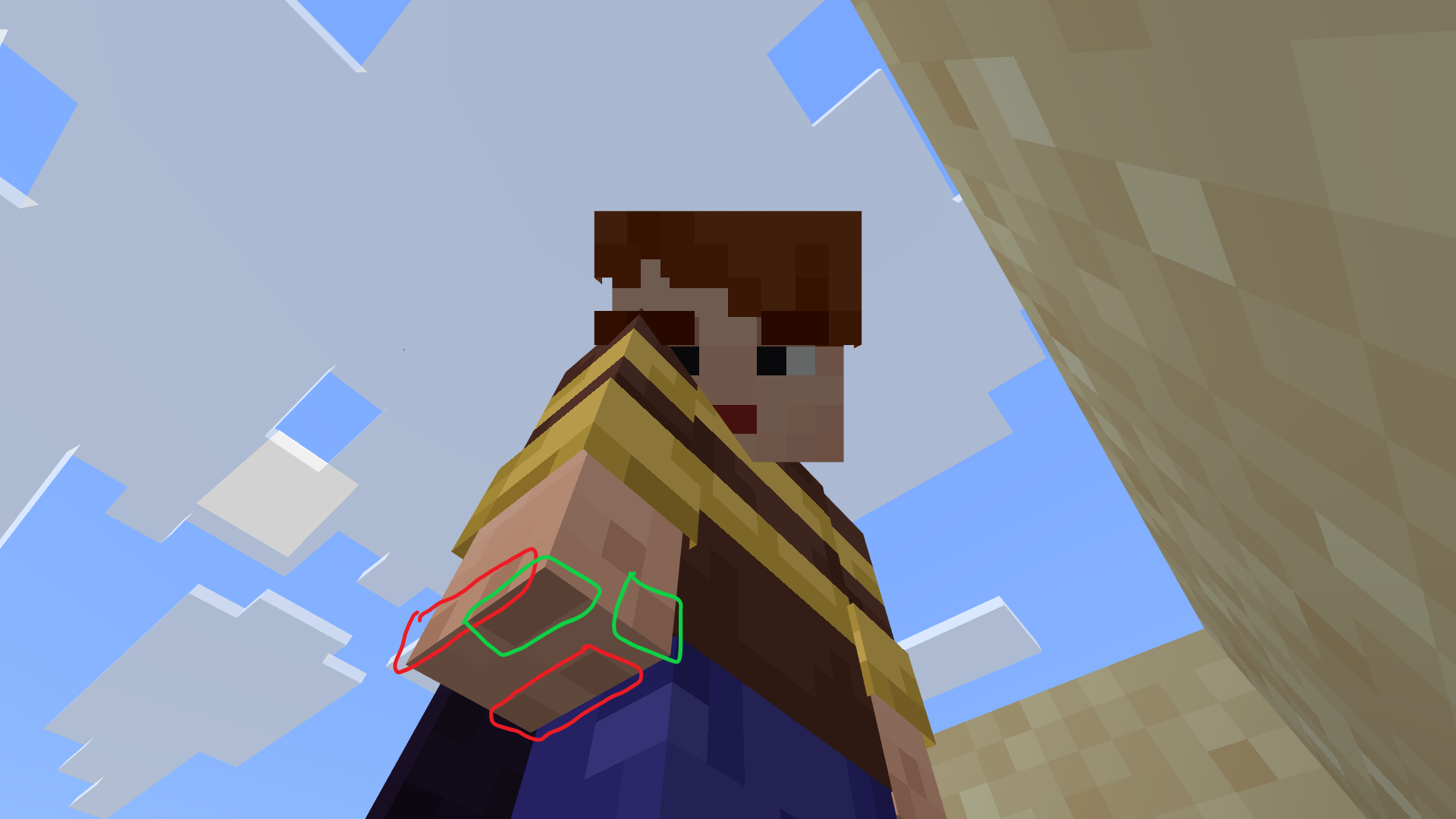 The underside of the hands appears mirrored in the Basic Texture. The finger pixels are abruptly interrupted from the sides of the hands and are displayed from below on the opposite side from the desired one, that is, mirrored.