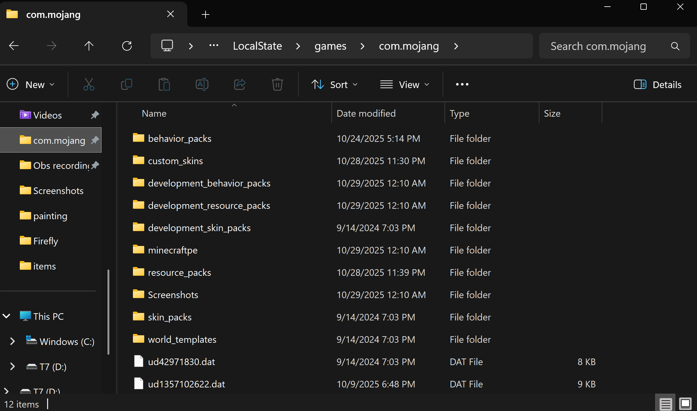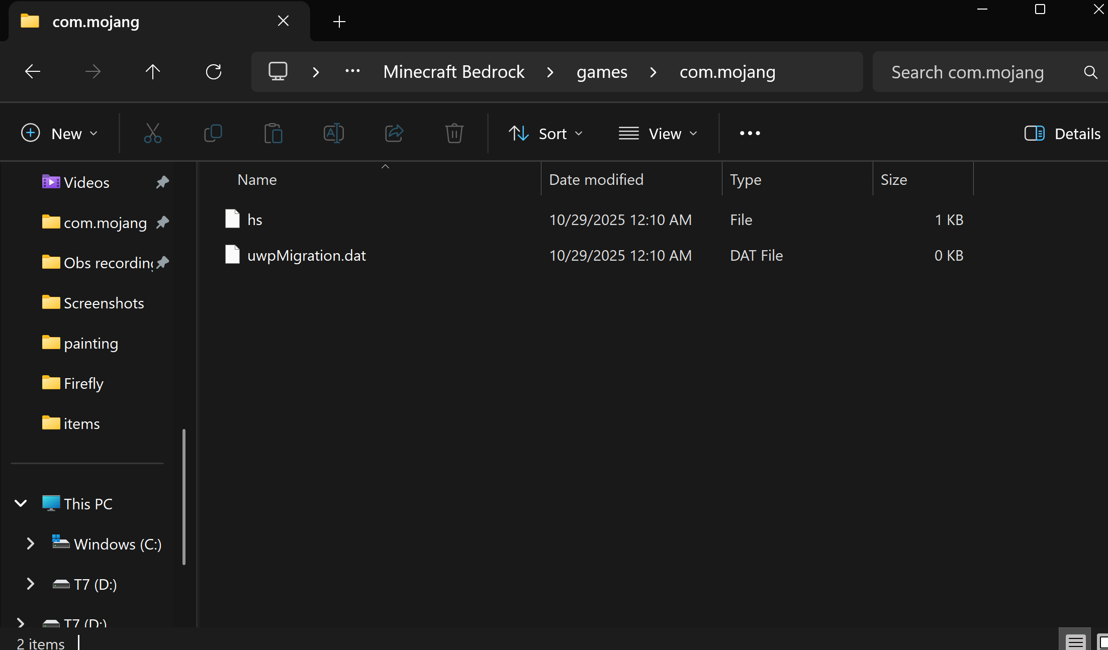 So basically my Minecraft restarted out of nowhere and it was reloading Minecraft but now on windows edition. Then soon after I lost all my created mods and skins that I have made. But when I checked the files they were still there but weren’t in Minecraft but in a different Minecraft completely. So now I think that I have 2 Minecraft’s since when I run the locater to find the Minecraft worlds folder it was not found but behavior, resource, etc were found except for worlds and there’s 2 copies of the com.monjag file with them both being seprarate. After I found the folder with the new restarted Minecraft it has no files at all except a file and a DAT file meanwhile the other one has all the mods and resources I made and downloaded. And when Minecraft is loaded it has a missing icon and a red border around the Minecraft application .If it was the update that caused this is there anyway for me to fix this and retrieve my worlds back?