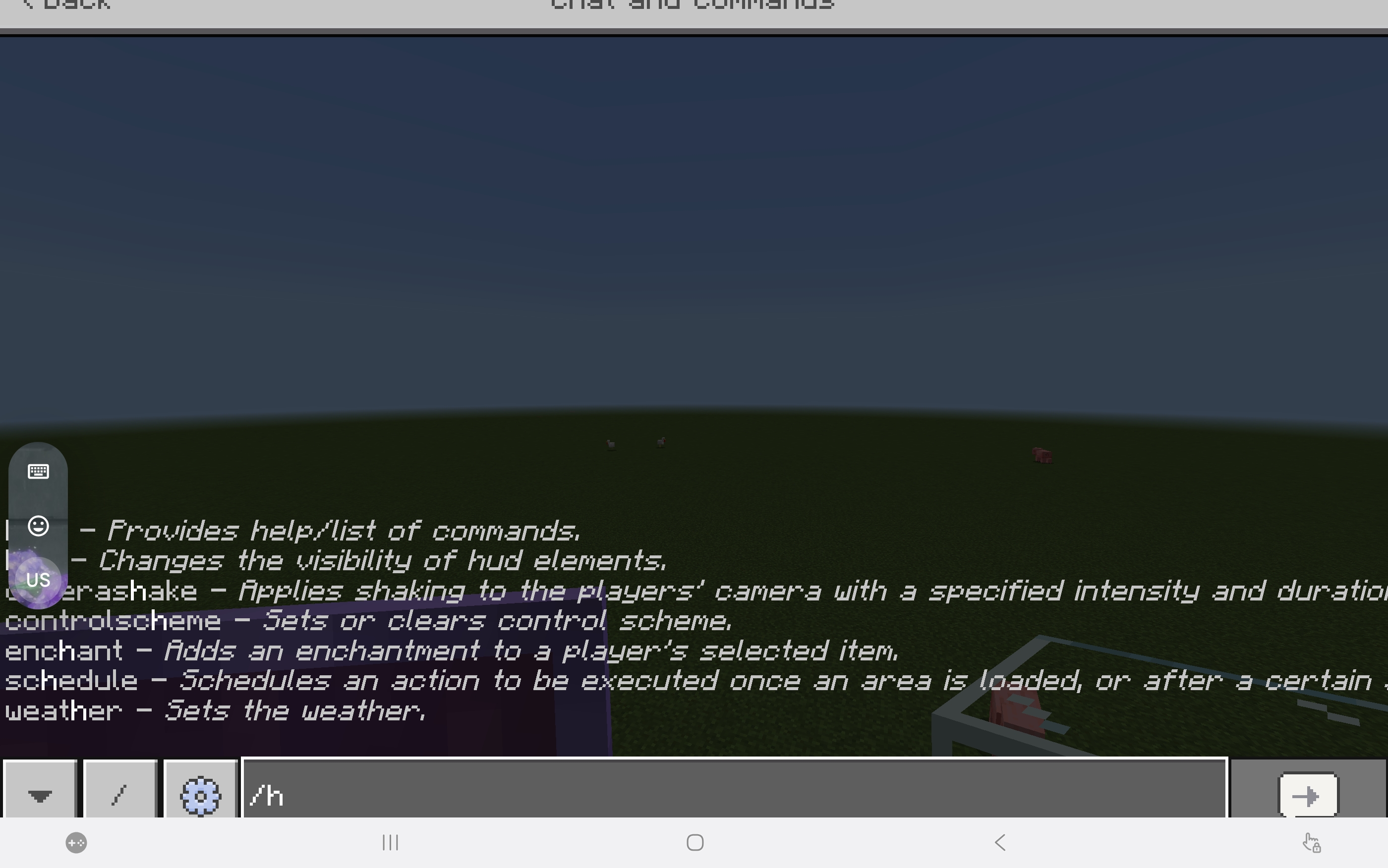 Occasionally while playing in touch screen mode and attempting to type a / Command, it will only type the first letter then refuses to type. May or may not also apply to opening the chat with the “T” key. Toggling the keyboard button in the bottom left corner on and off seems to fix it, as does pressing enter then Opening chat again. Backspace still works while I can't type. Assuming it's related to the update to the keyboard toggle button