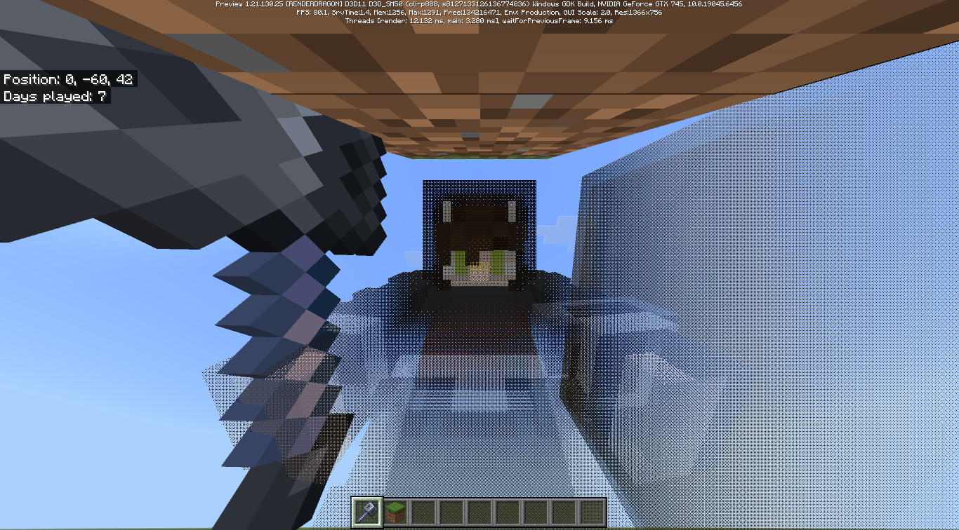 When you enabled "Player and mob dithering" toggle in Accessibility settings, and then hold non-attachable items (like Grass Block or Diamond Sword), the items will not get dithered.