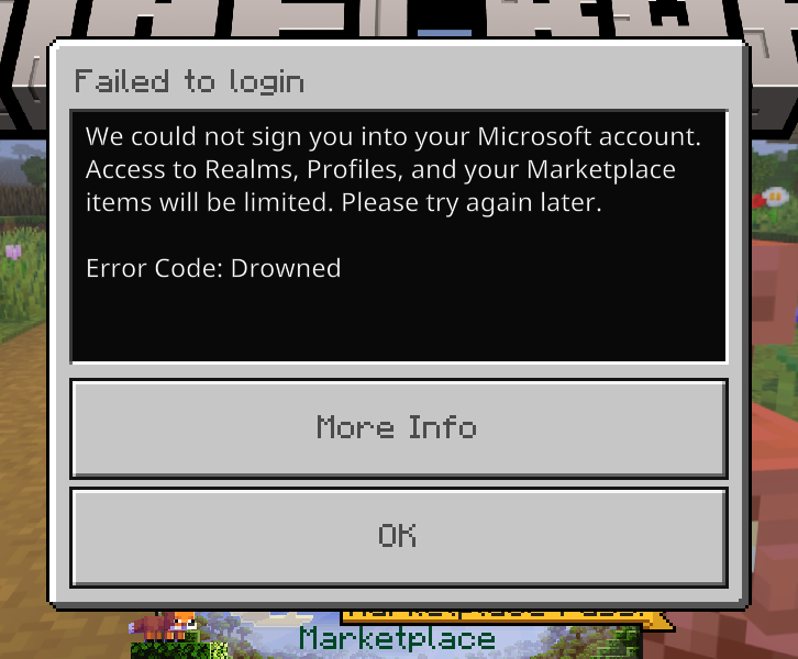 I am logged into the Minecraft Launcher, but when I click to play and it launches Minecraft Bedrock, I am not logged in. when I try, I get an error that says "Drowned". I have tried all the recommended troubleshooting guidelines and this issues persists.