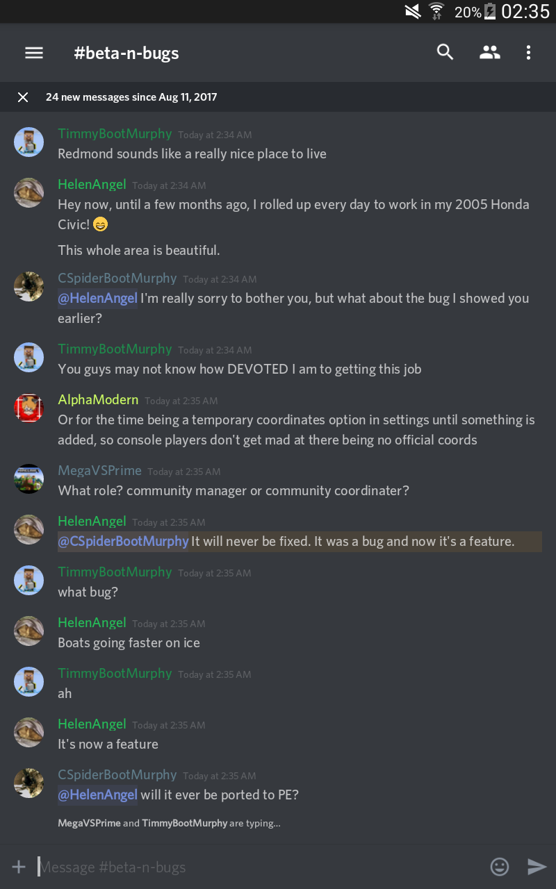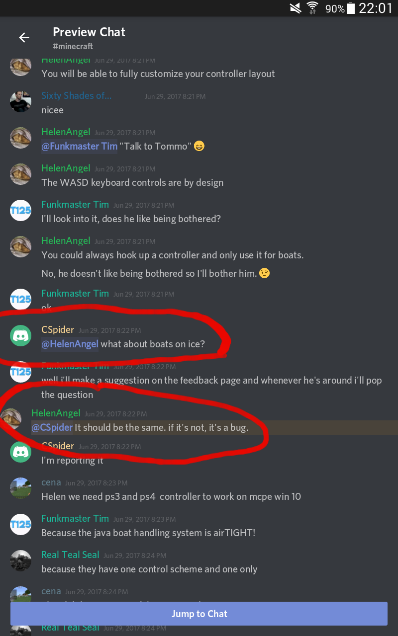 When riding a boat on ice, the speed of a boat doesn't change. In Java and consoles, the speed is increased when on ice. I know it should be in the game. Confirmed by Helen.
