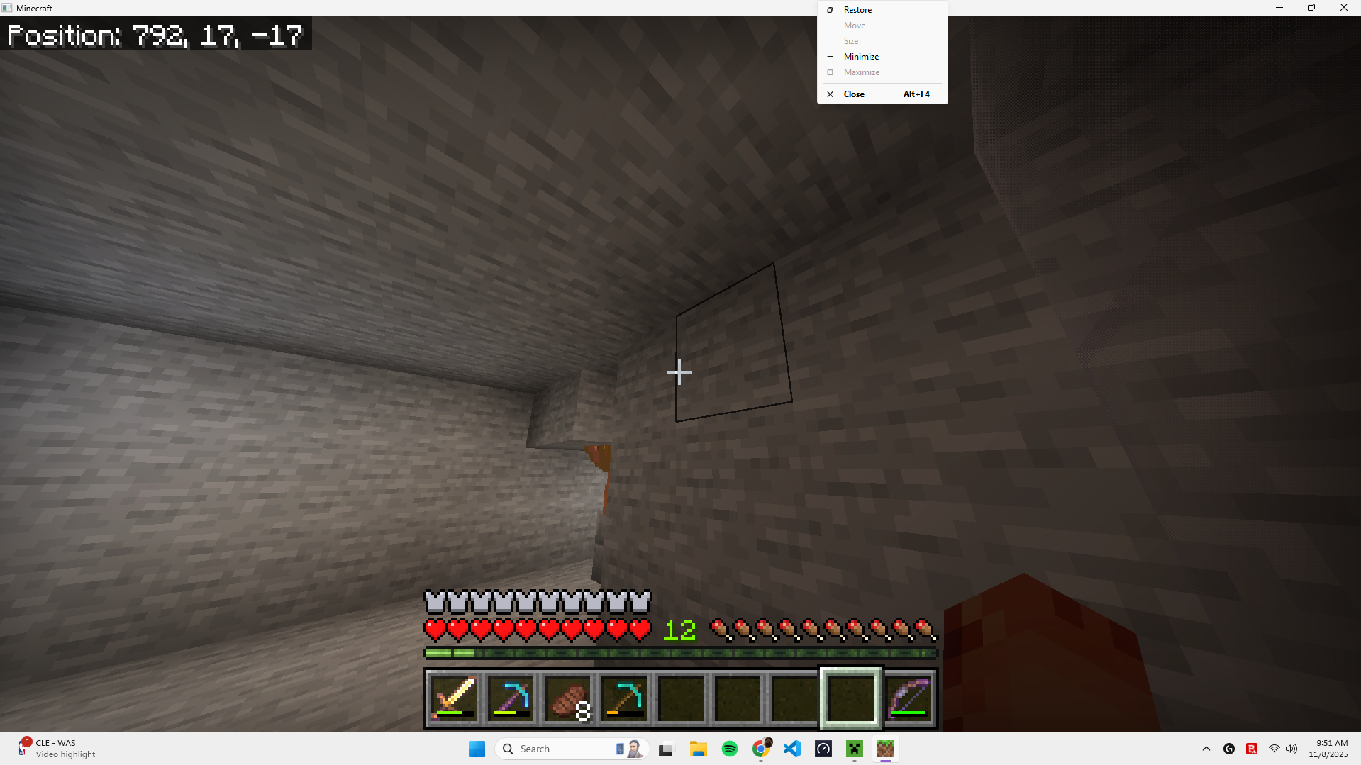 I’m experiencing a bug in Minecraft Bedrock where the cursor is not properly locked in the game window. When I move the cursor to the edges (top, bottom, or sides) and click, the game loses focus and goes into pause.