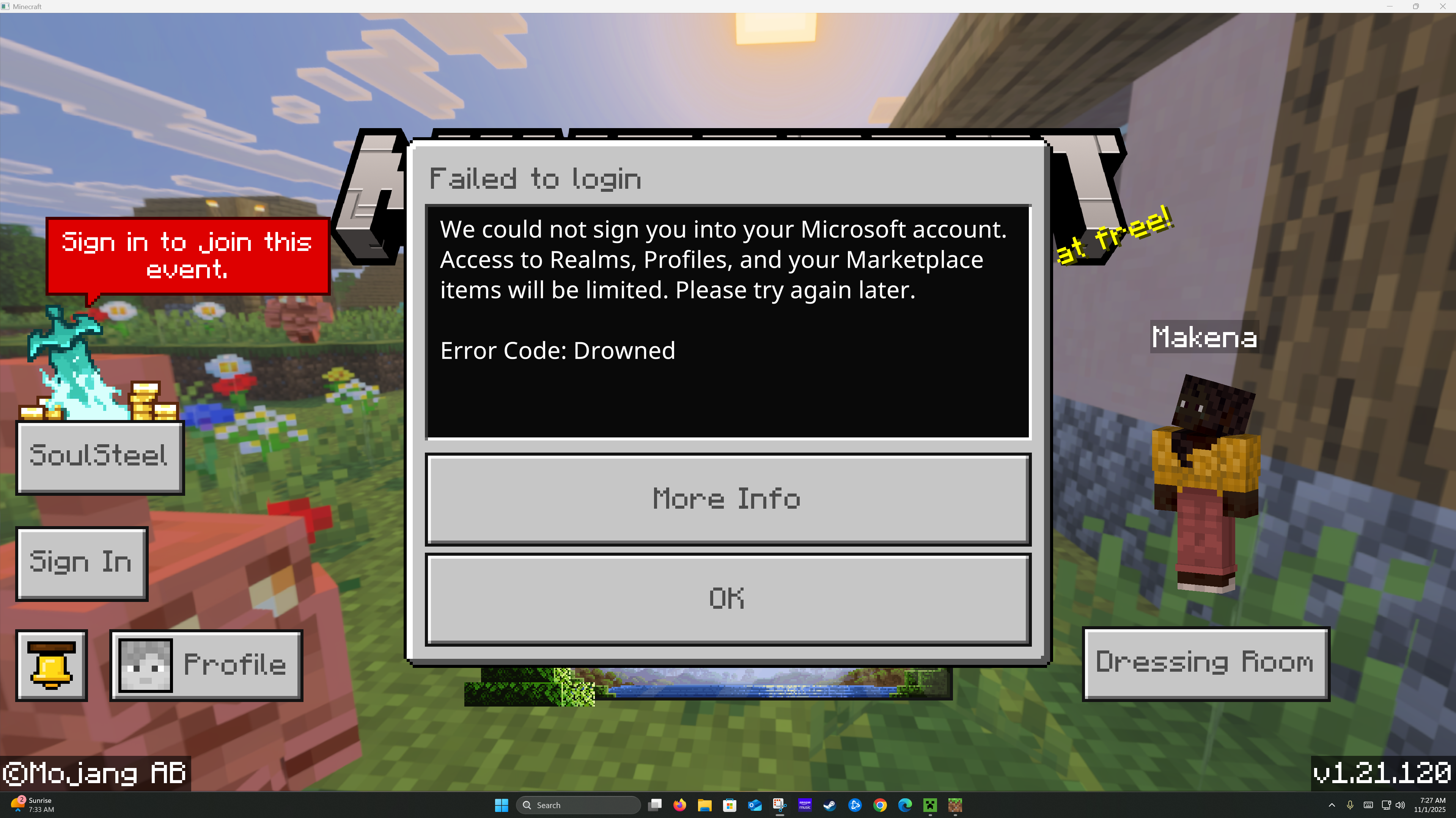 Everytime my son goes to log in it gives him the drowned error. I have reset his account multiple times and changed his password. Everything I’ve found shows this to be an issue with the 1.120 update for family accounts with a Child. Very frustrating - We have also tried this on multiple PC’s with the same effect.