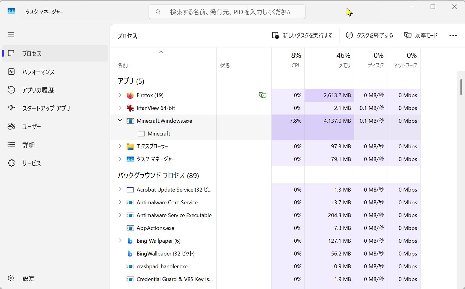 Checking Task Manager revealed Minecraft occupied over 4GB of the 32GB installed RAM.