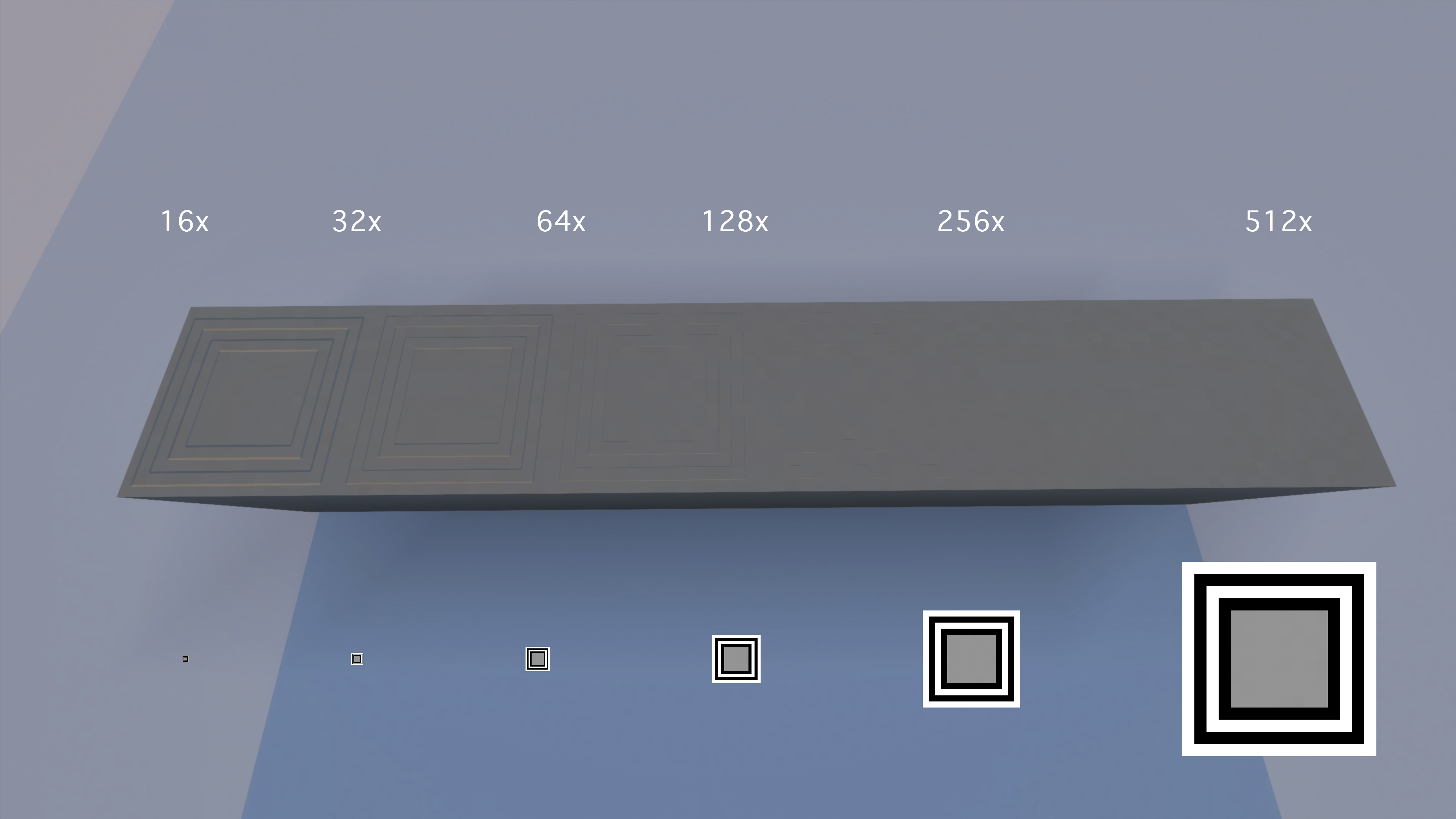 Create two textures of the same image, e.g., one at 16×16 px and another at 256×256 px including heightmaps.