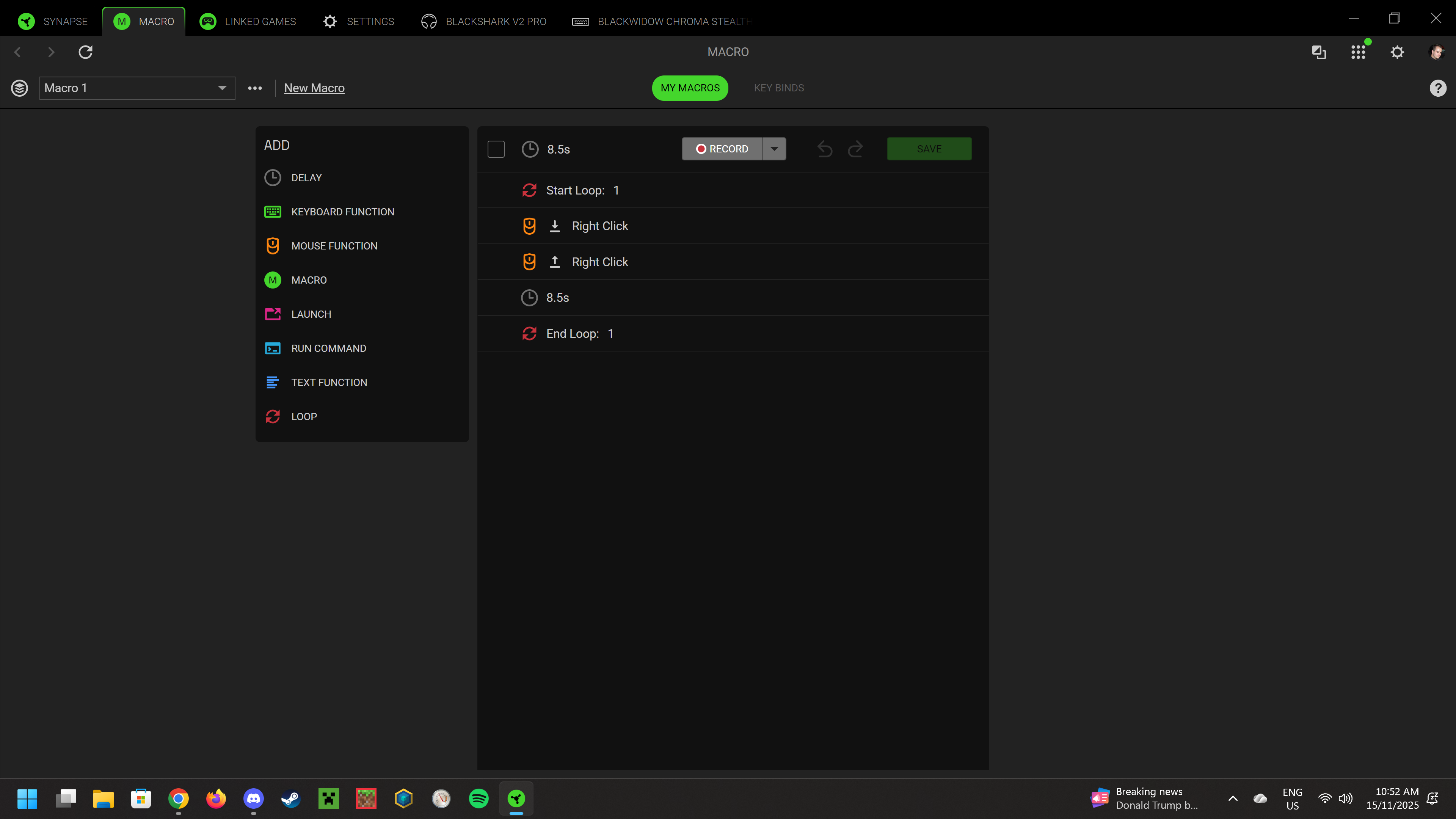 I have a Razer Blackwidow Chroma Stealth keyboard, it has 5 macro keys, I have the first macro set up to press the right mouse button every 8.5 seconds, I activated it even before this update and it is making my character face in a random direction not clicking the right mouse button at all. Works in other games though