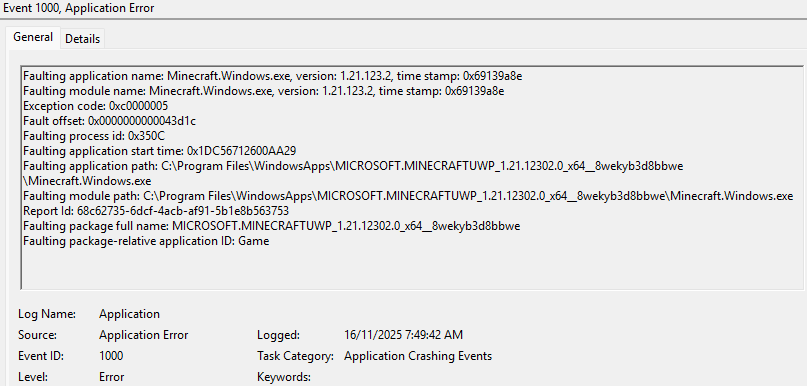 ModulePath C:\Program Files\WindowsApps\MICROSOFT.MINECRAFTUWP_1.21.12302.0_x64__8wekyb3d8bbwe\Minecraft.Windows.exe