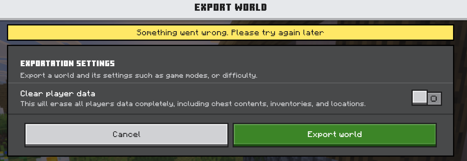 A file of the world is created but it is 0 kb so would appear that the export function is not working properly.