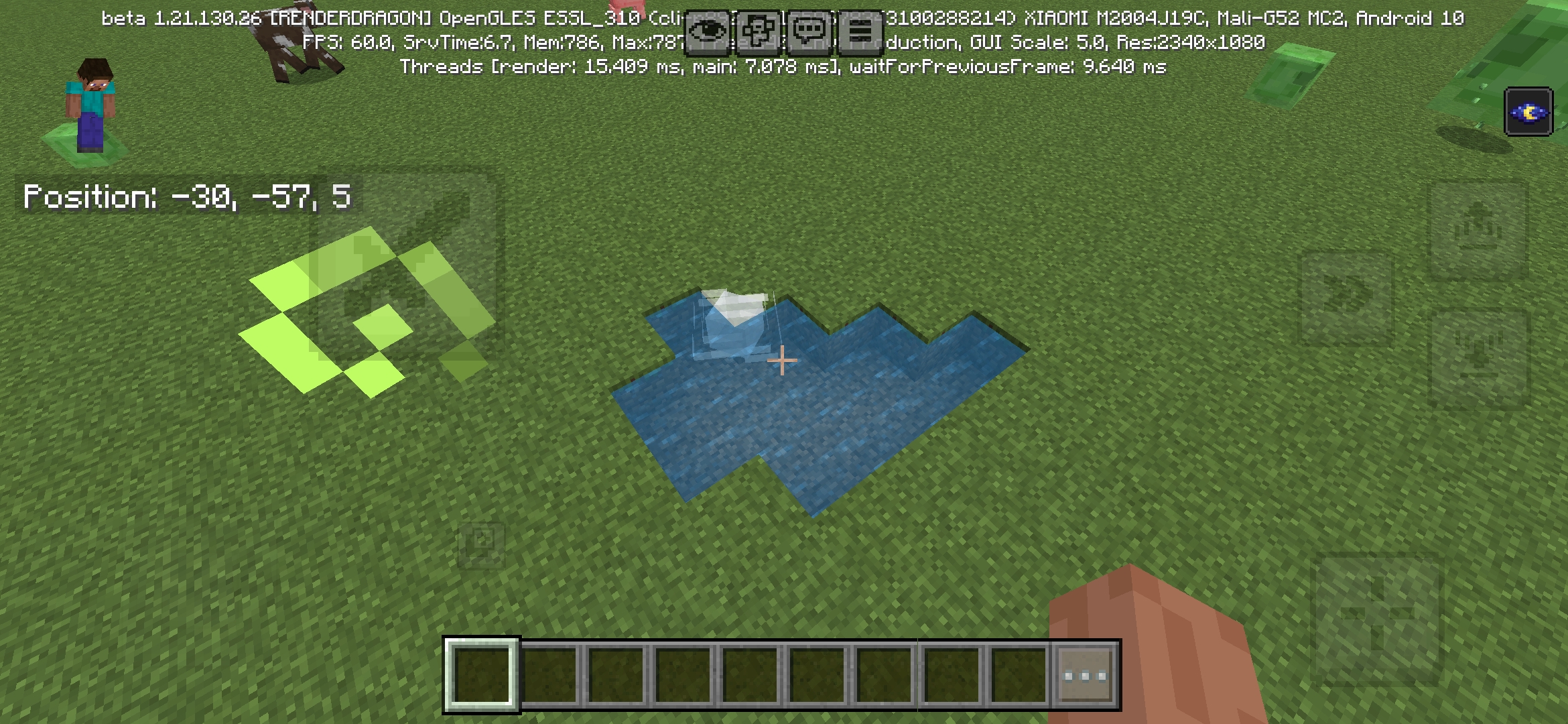 Instead of showing the correct blocks behind it, it only displays a water texture.
