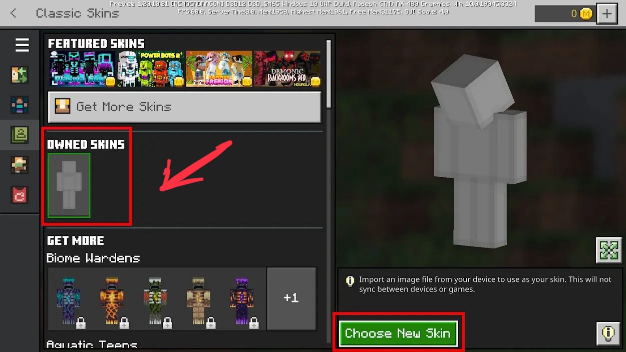 Existing imported skin packs should be deleted upon opening and exiting the Classic Skins menu