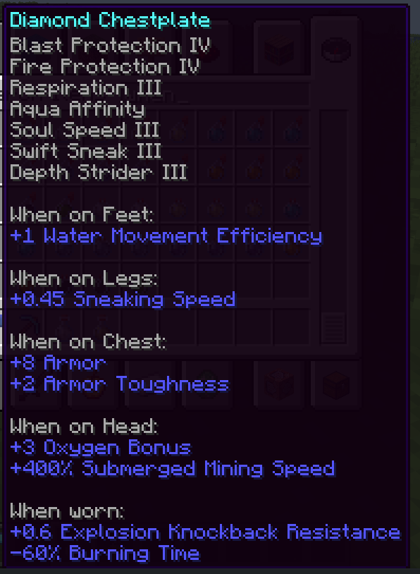 Java’s 1.21 update introduced data-driven enchantments. Part of this work involved creating new attributes which those enchantments modify, and those attributes are now displayed on relevant items' tooltips. None of these changes made it to Bedrock.