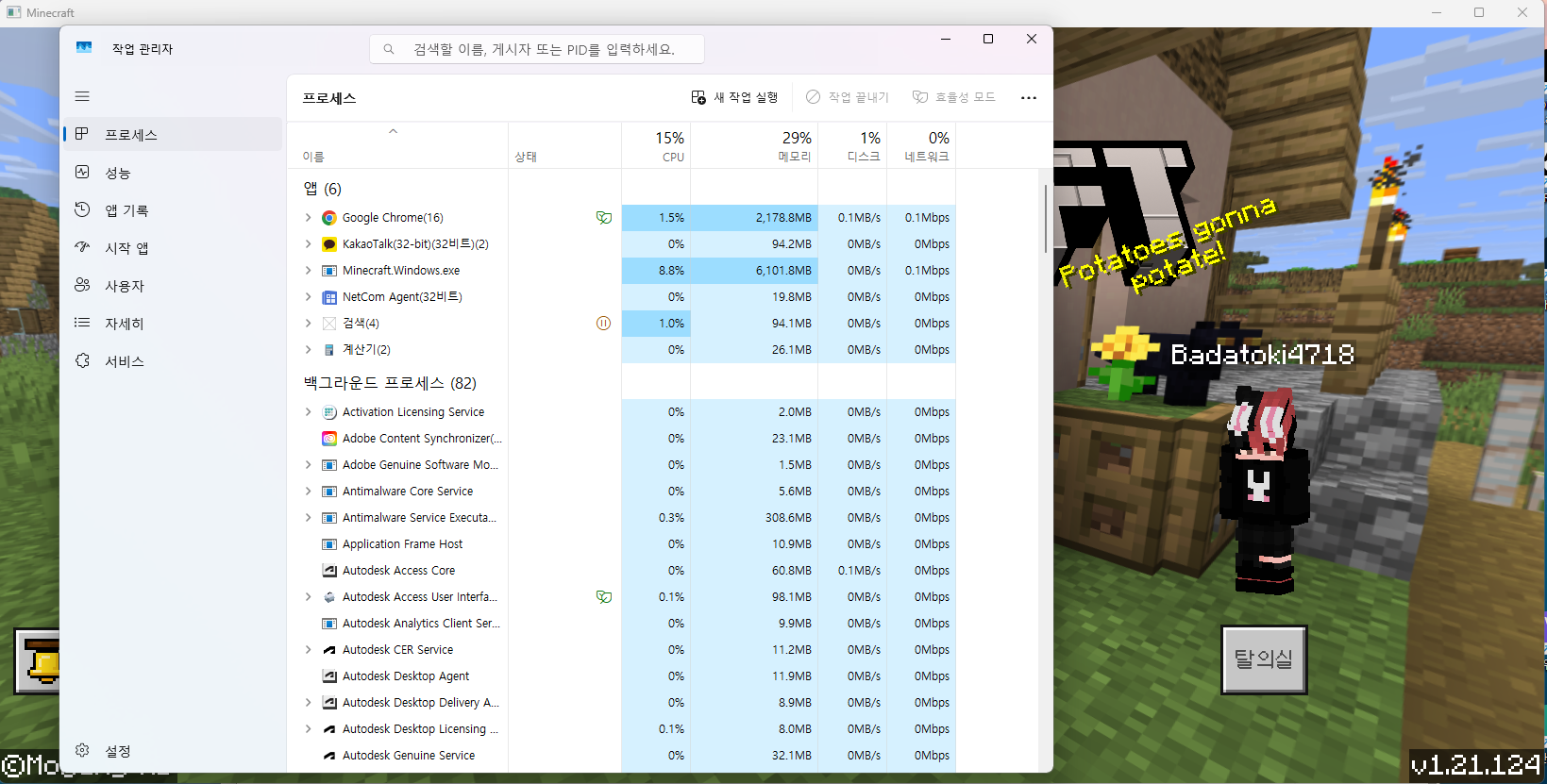 The update to 1.21.124 has improved the issue of frame drops, but specifically, Ram usage has increased with each use of the wings, going from 4GB to 6.5GB now. As Ram usage has increased, frame drops are also appearing. The highest usage was 12.7GB.