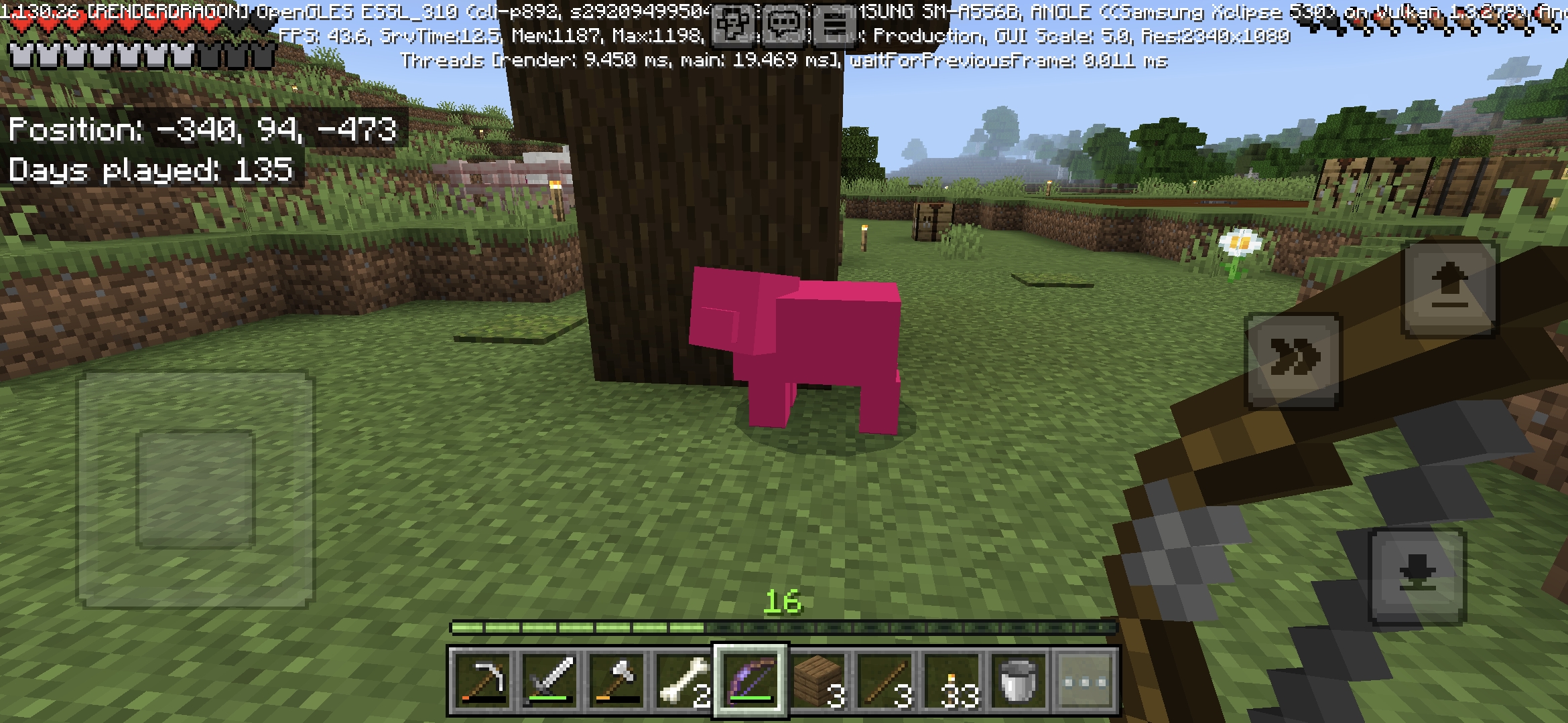 First I noticed a new spear zombie not burning during daytime, without a horse. Then I saw a pig that was fully one colour of pink. Then I saw all my cows turned into cubes