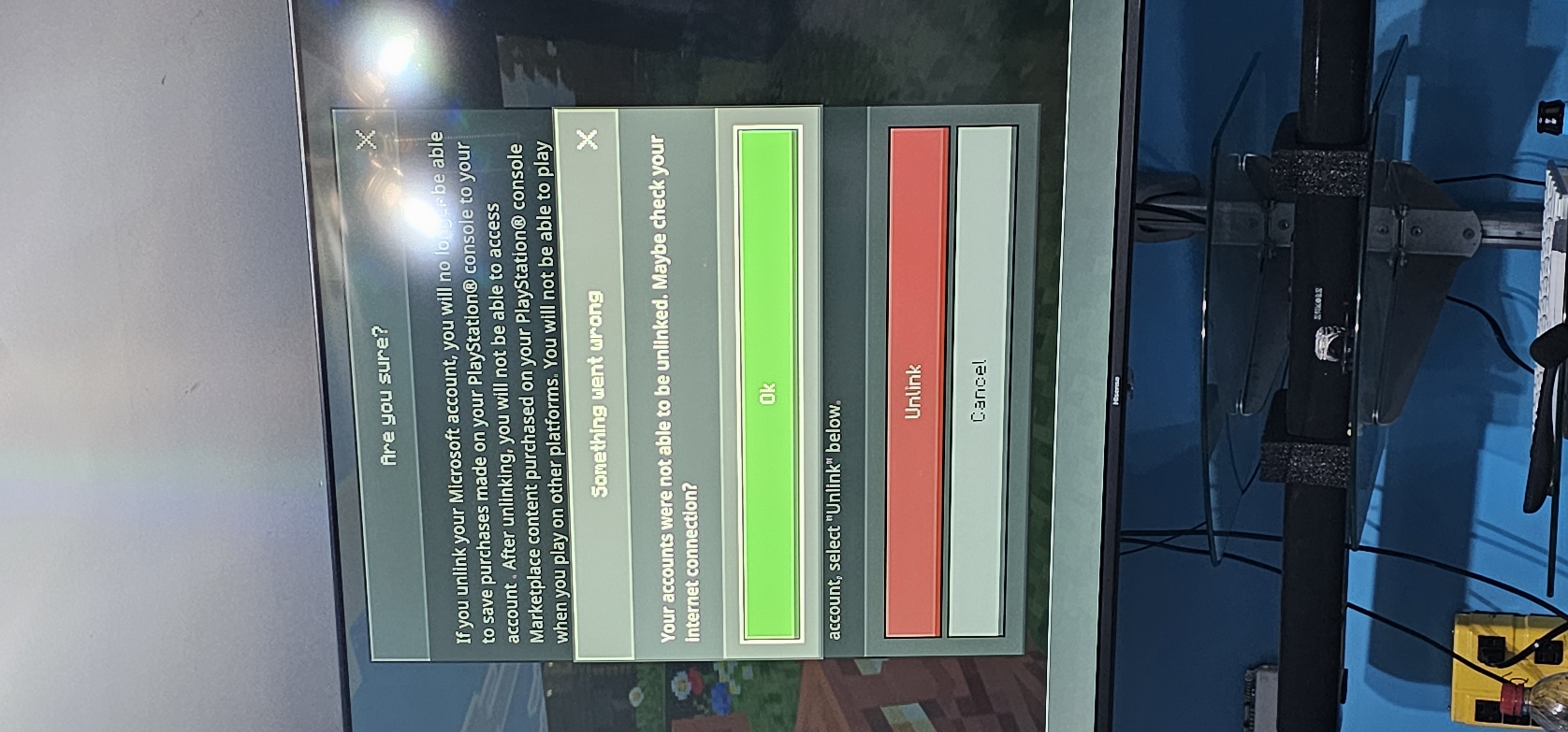 So what happened is i try sign in with a Microsoft account I did put code go in i see popup failed to login i select it Unlink Microsoft account and after that I select it unlink I got is very weird message is must be bug or can't be glitched going on with it
